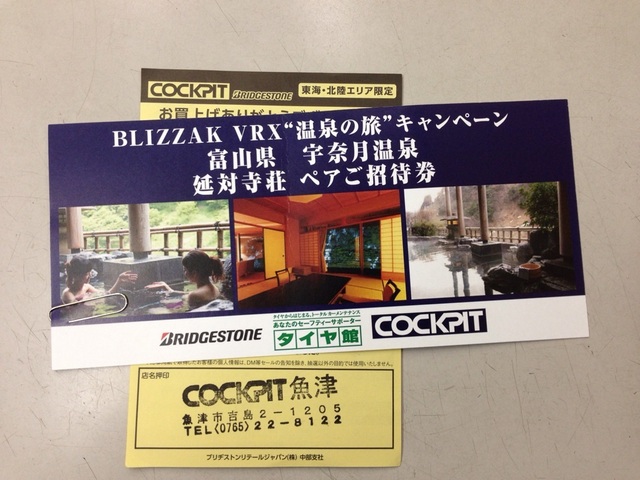 2015年12月27日 ツイート 10月から開催していた東海・北陸地区限定のブリザックVRXキャンペーン。当店から当選者が出ましたよ~ヽ(≧∀≦ )ノ☆祝☆ヽ( ≧∀≦)ノいや~おめでとうございます。未だ当選されてない方もラストチャンスが残ってますので、期待(淡い?)して待っていてくださいね~ちなみに12月31日までなので、まだ間に合いますので... Prev Next