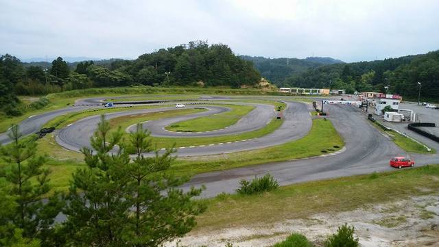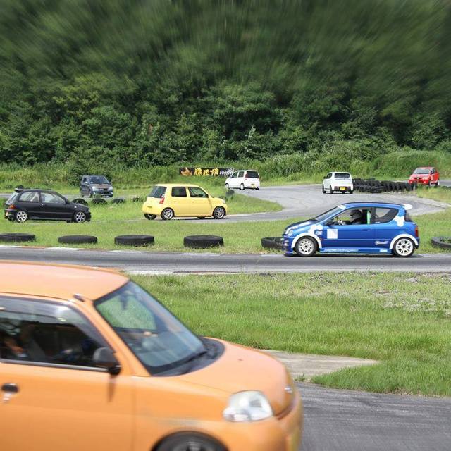 走行時間の中盤くらい、おわらサーキット支配人のスーパーエッセが走行を始めました。