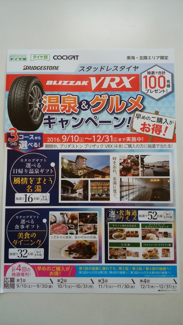 BLIZZAK VRXを4本お買い上げの方に抽選で当たります。