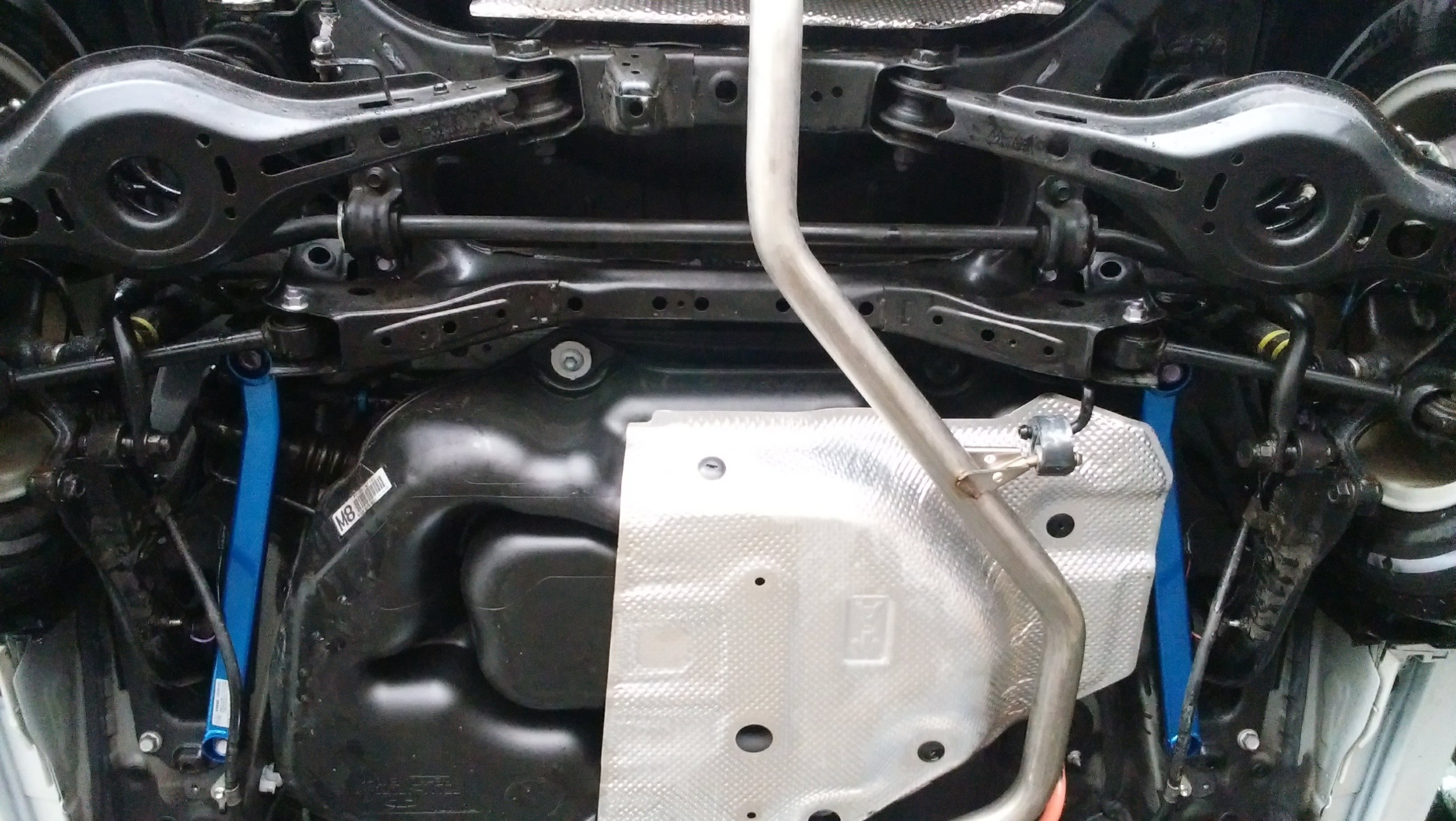赤で囲ったところに純正の補強バーが入っておりました。コレを外してクスコブルーのパワーブレースを取り付けます。