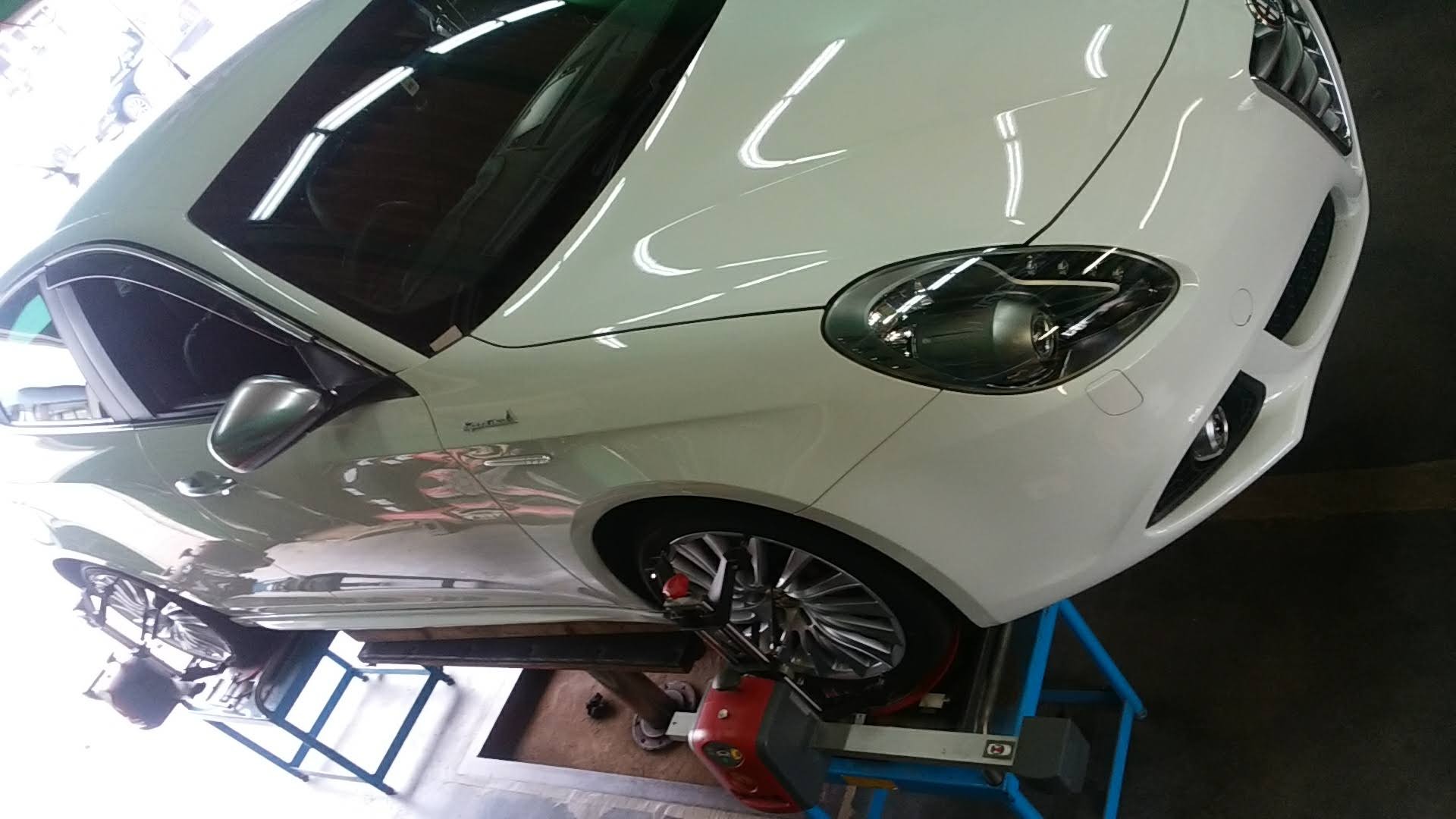 画像を撮り忘れていましたが、実は3月にも赤いアルファロメオ ジュリエッタの4輪アライメント調整してました。