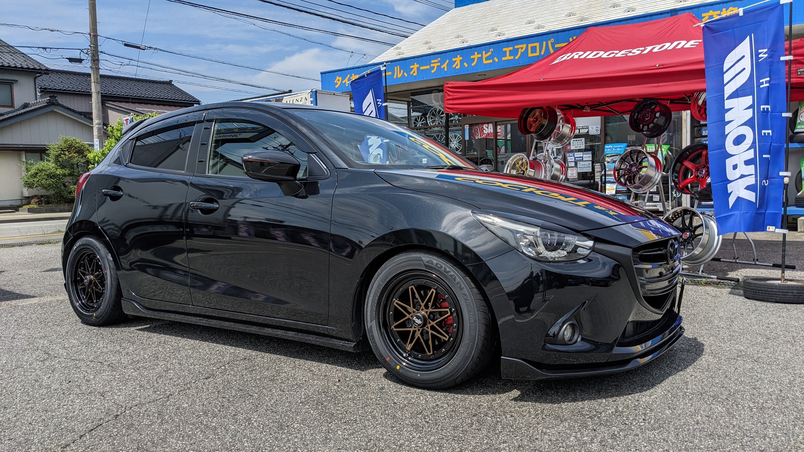 春先にオーダーいただいてましたWORKのEquip03が、WORKのホイールをいっぱい展示してあるタイミングで入荷しました。