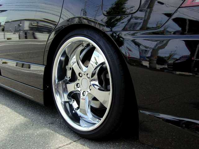 ドレスアップのカスタマイズは多数ながら、どことなくアブソルートらしくスポーティな一面も感じられる一台に仕上がっています。ホイールはパンチのあるエアロに負けないように幅広のディープリムを合わせ、しっかりめの車高調でローダウン。外装だけでなく、サンバイザーモニターやALPINEの天つりモニターの装着で、家族サービスも忘れてはいませんよ。