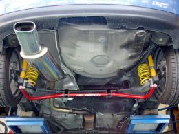 エアロパーツ以外は一通り手が入っているこの車。 POTENZA RE050とVOLKの軽量ホイールのセットに始まりATE製のブレーキキャリパーや車高調、スタビライザー、エアクリ、マフラー・・・。 内装もレカロにカロマット、HDDナビやオーディオ・・・。 なかでも特筆すべきはオーディオで、ALPINEのシステムで統一。 ドアやピラーにアウターボード加工を施し、当店一押しのスピーカーDLX-Z17PROをインストール。トランクにもボード加工で取り付けた5チャンネルアンプとサブウーハーがあり、PKG-H701Sのプロセッサーでマルチスピーカーシステムにしてあります。 めちゃくちゃマニアックなシステムというわけではなく、そこそこの費用でもポイントをおさえればいい音が楽しめる! そんなお手本的な一台だと思います。 そのほかホイールでも、乗り心地にこだわった結果、設定のない軽量アルミホイールを精密加工ではけるようにしたりなど、オーナーのこだわりを感じる一台です。