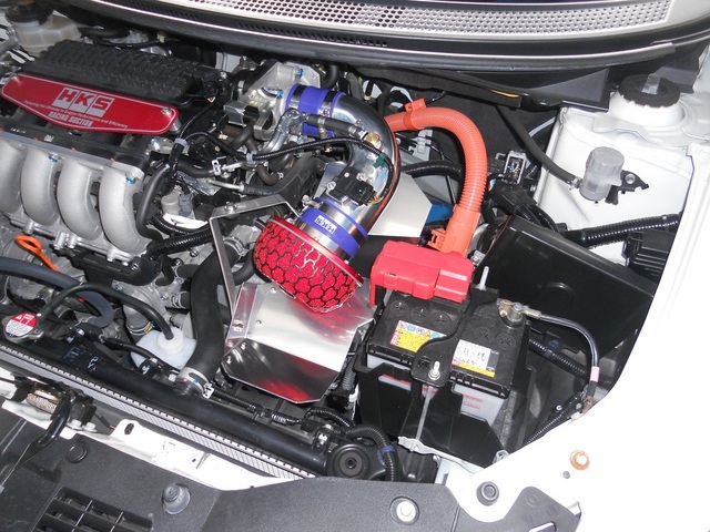 真っ赤なフィルターが目を引くHKS製レーシングサクションR。