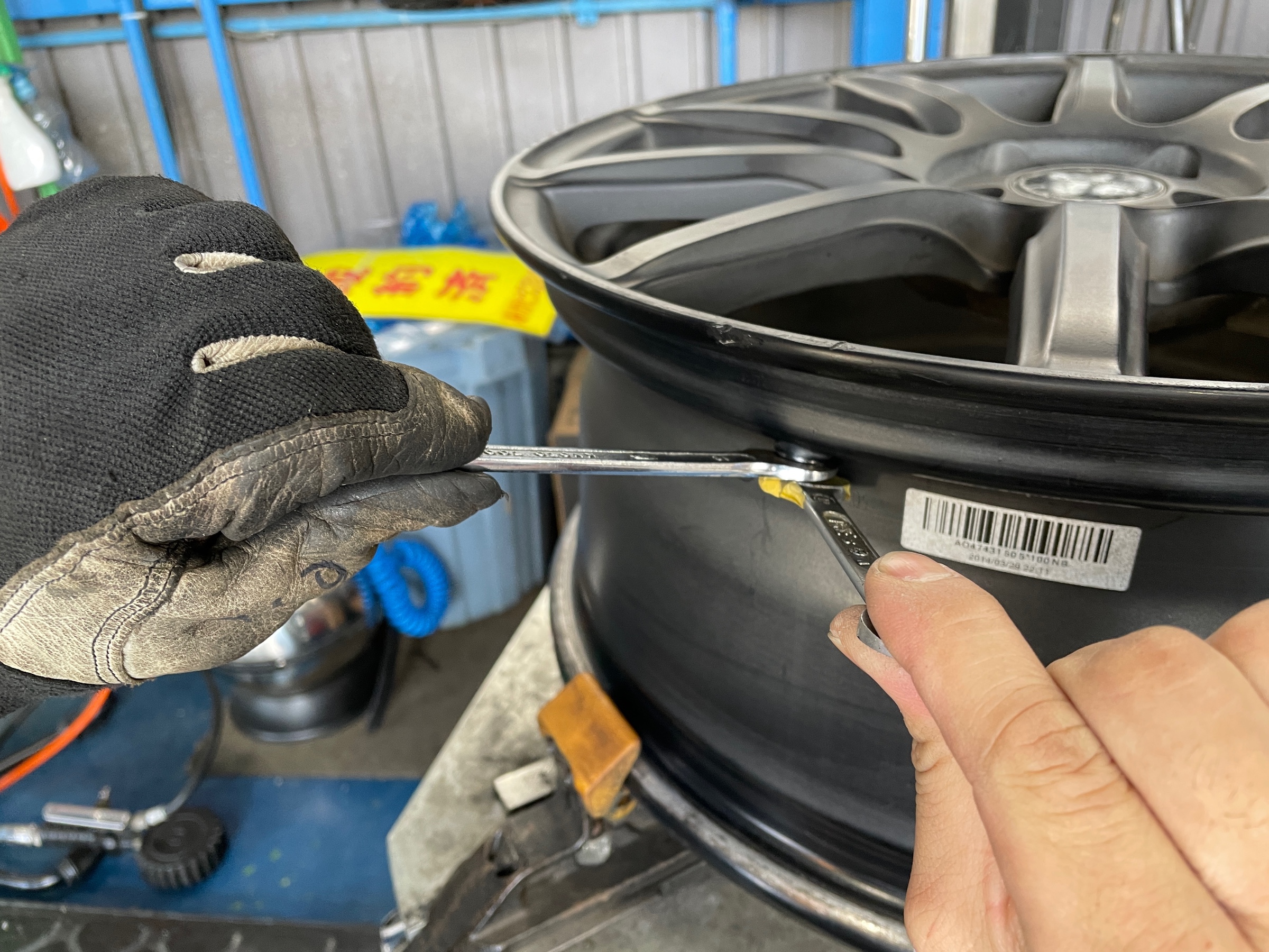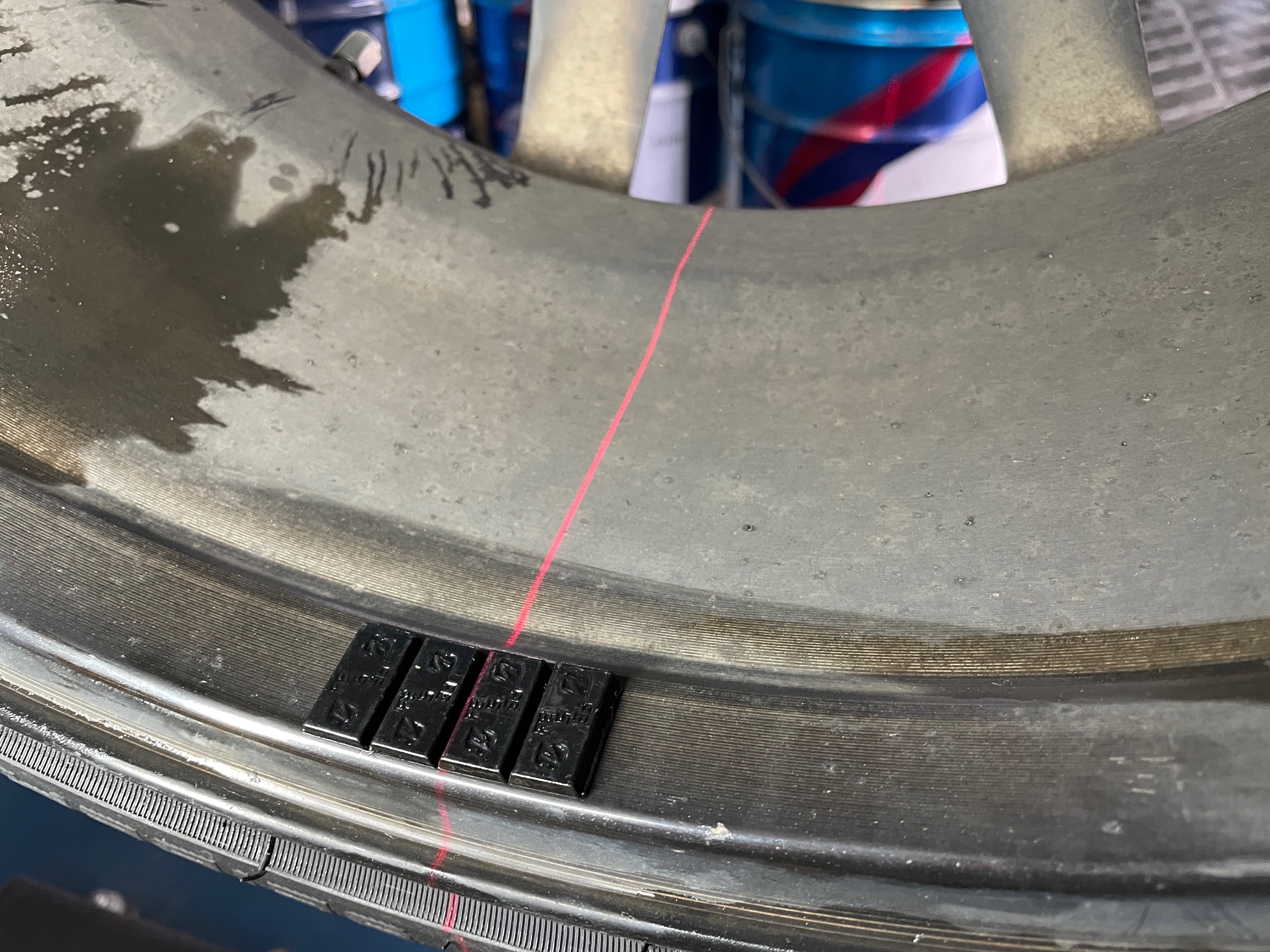 タイヤを組んだらホイールバランスを調整。