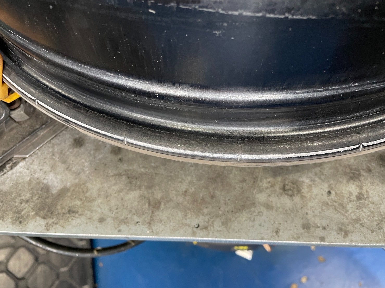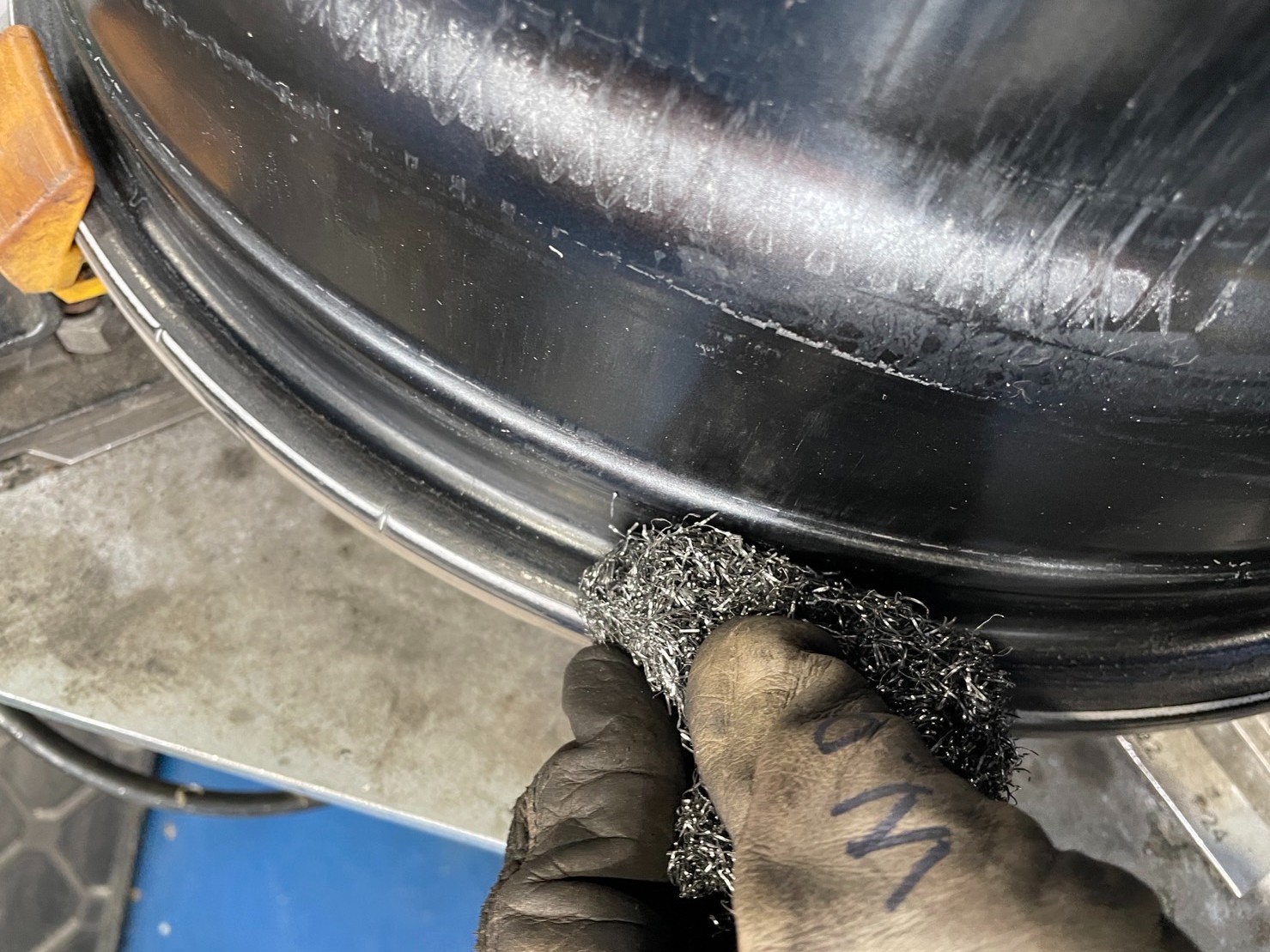 手慣れた作業ですのでサクッとタイヤを外し、ホイールについているタイヤの残りカスを掃除していきます。