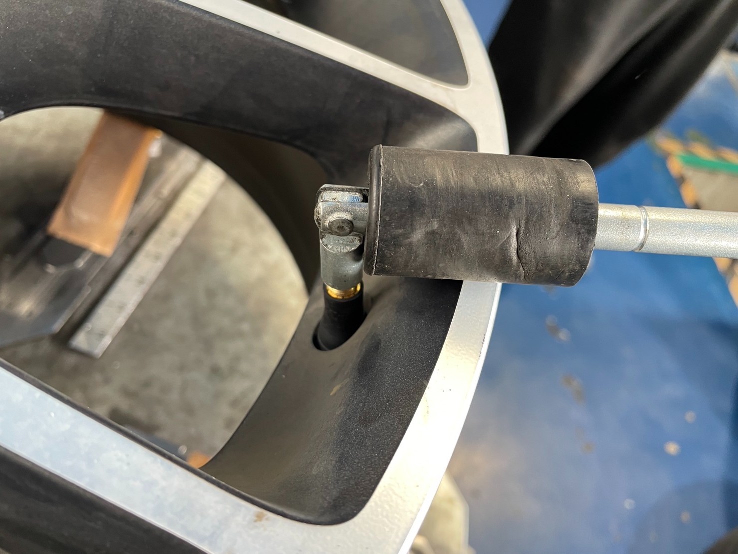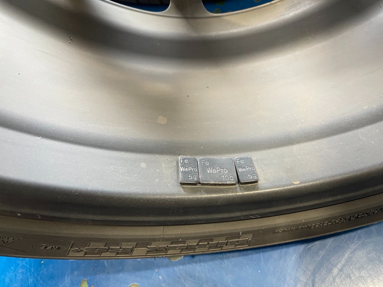 まずは前回貼り付けたであろうバランスウェイトを外します。