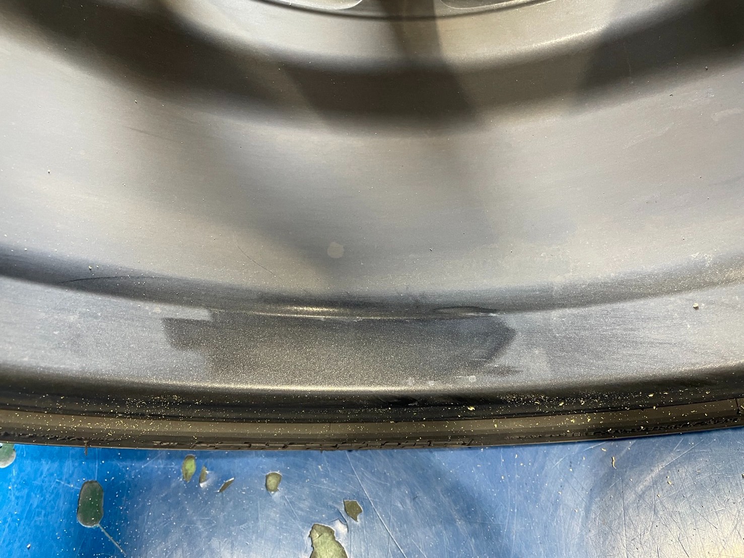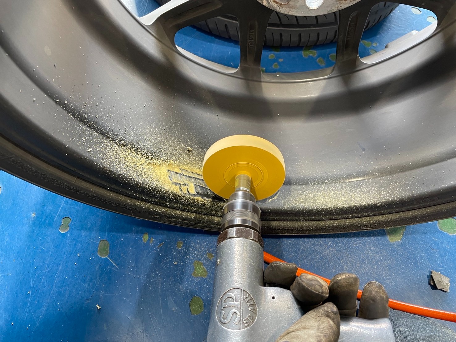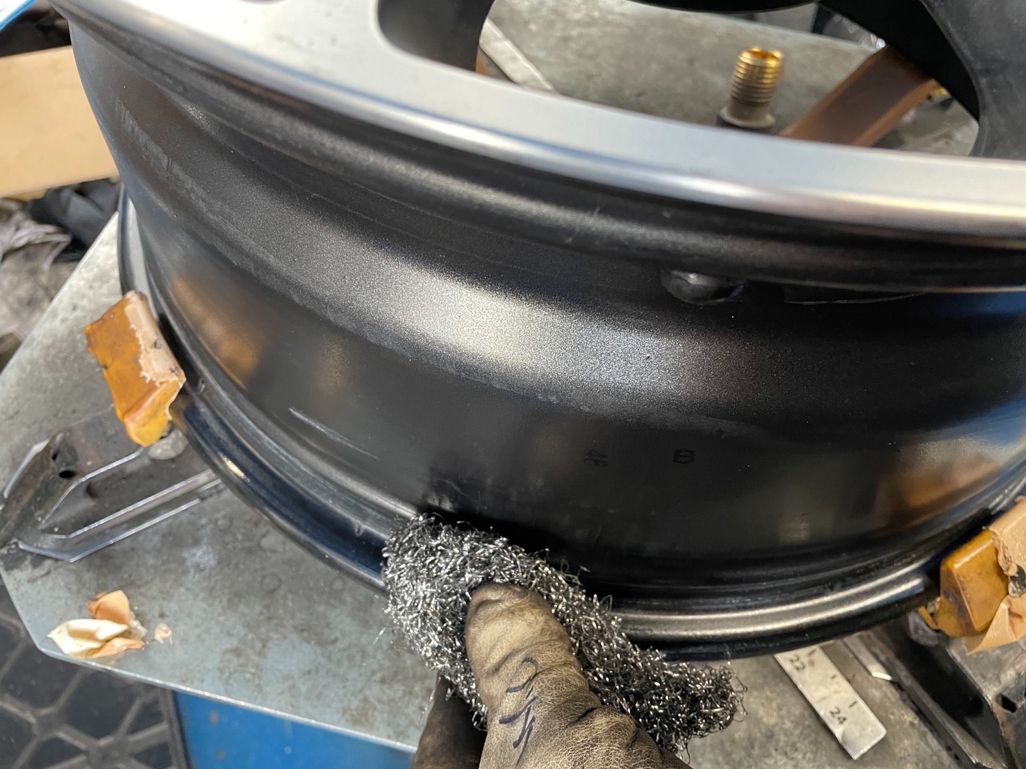 お次はリムと呼ばれるタイヤと密着する部分のタイヤの残りかすを取り除きます。