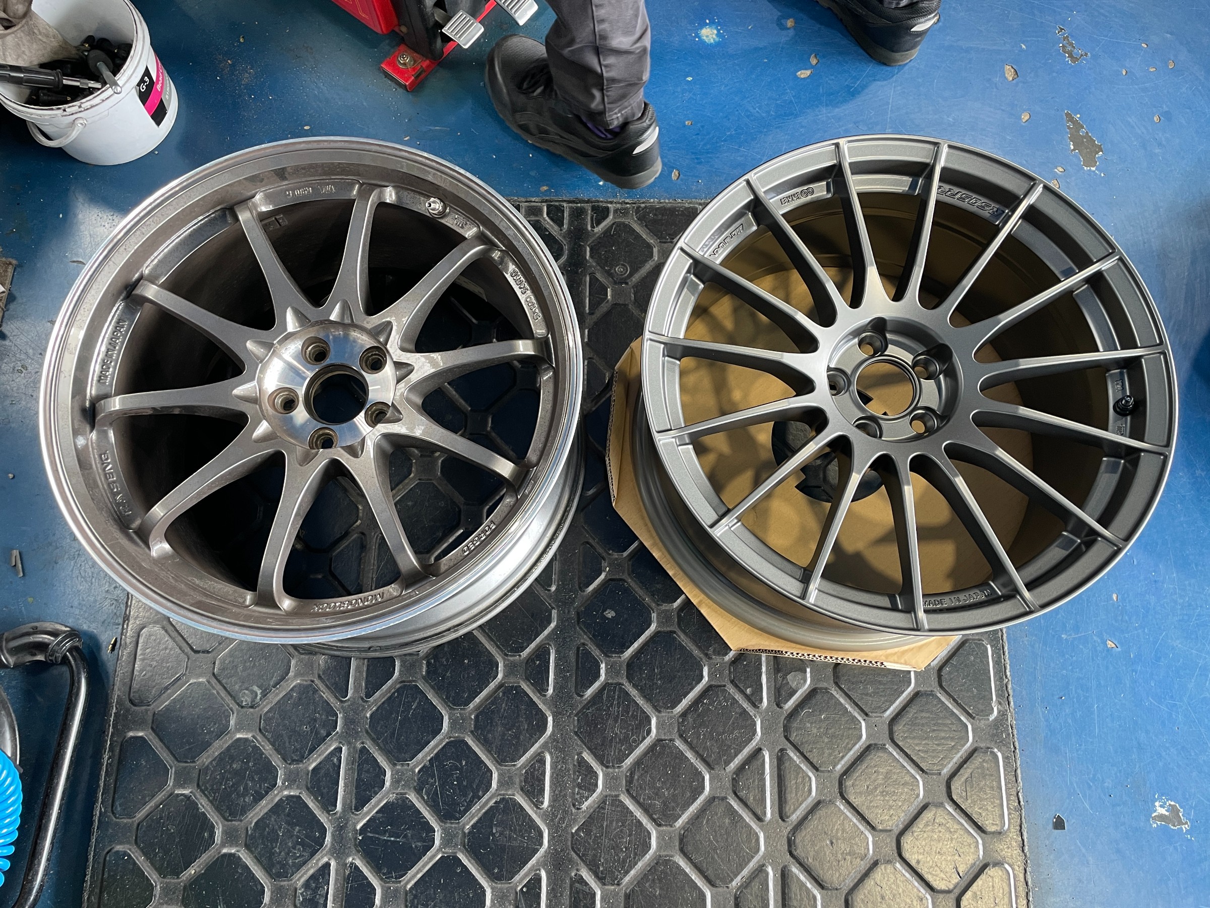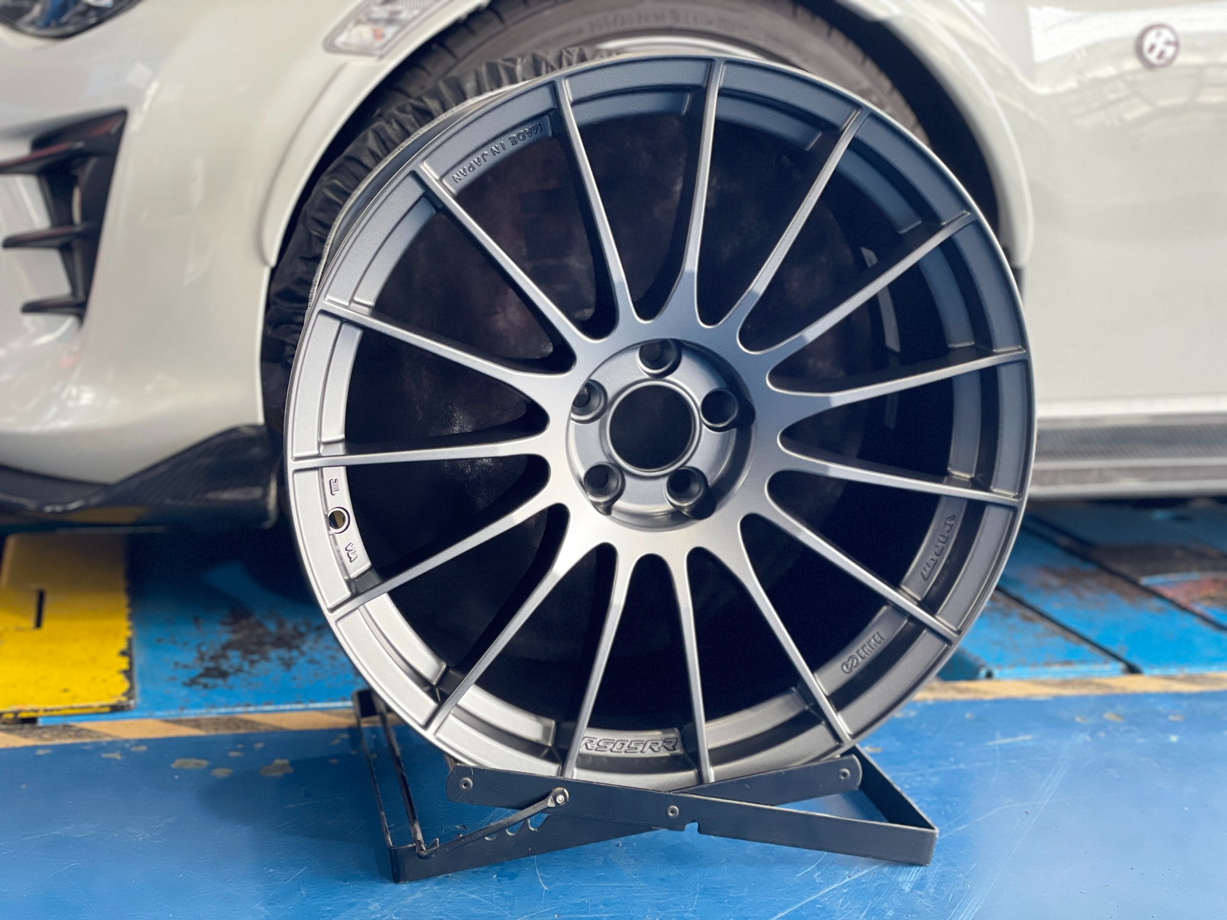 今回は出面に変化ありませんが、オーナー様のイメージチェンジのご希望に合わせてサイズとデザインを変更し、『ENKEI RS05RR』に交換していきます!!