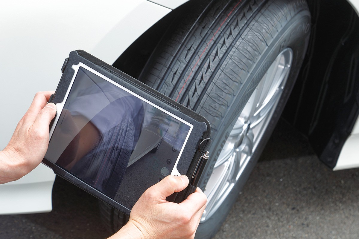 タイヤの損傷や劣化など問題が認められた場合には、その状態を撮影してタブレットなどを用いてお客さまに説明させていただくこともあります。