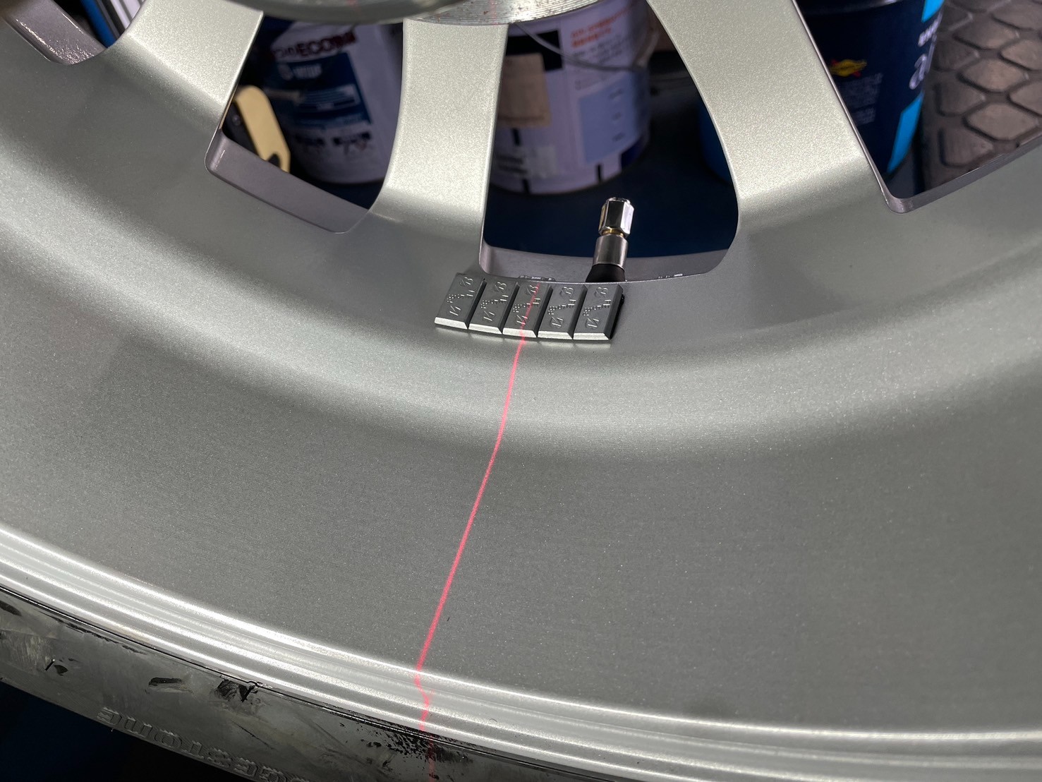 赤い線の部分がバランスが悪い部分なのでそこを目掛けてバランスウェイトを貼り付けます。