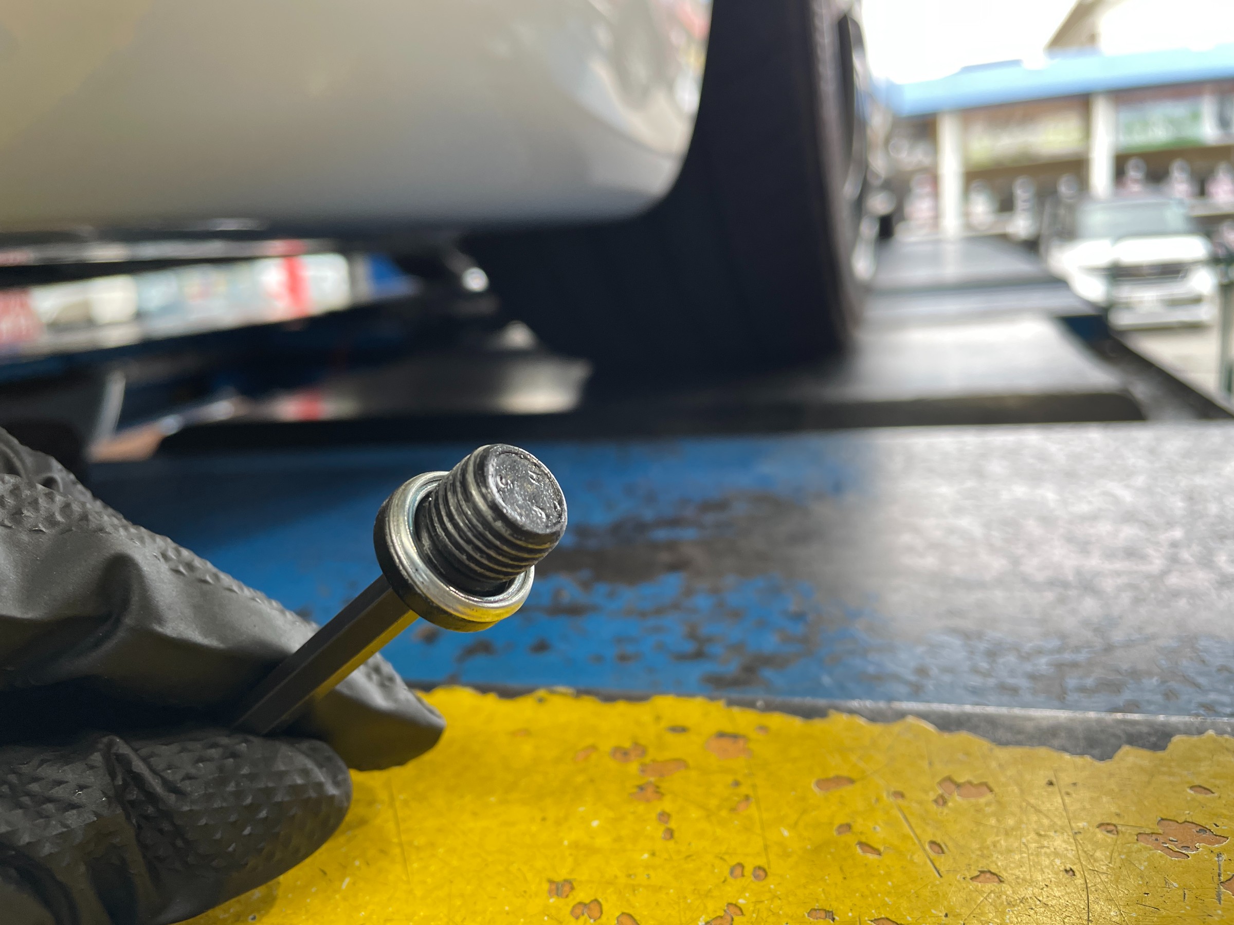 サクッとオイルを抜いて、もちろんドレンボルトパッキンも新品へ変更です♪