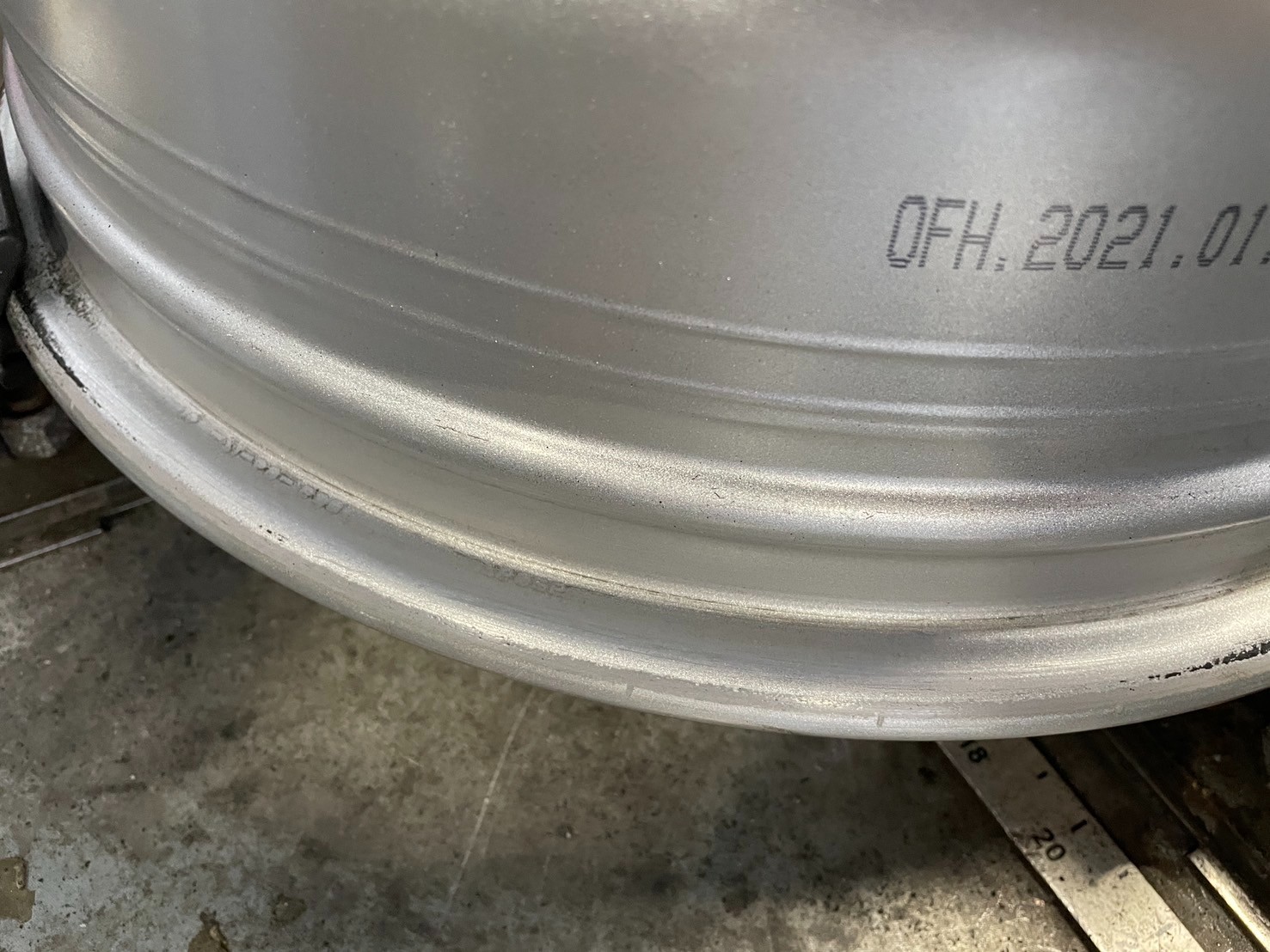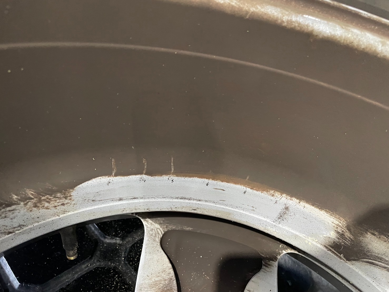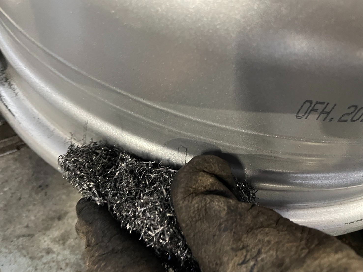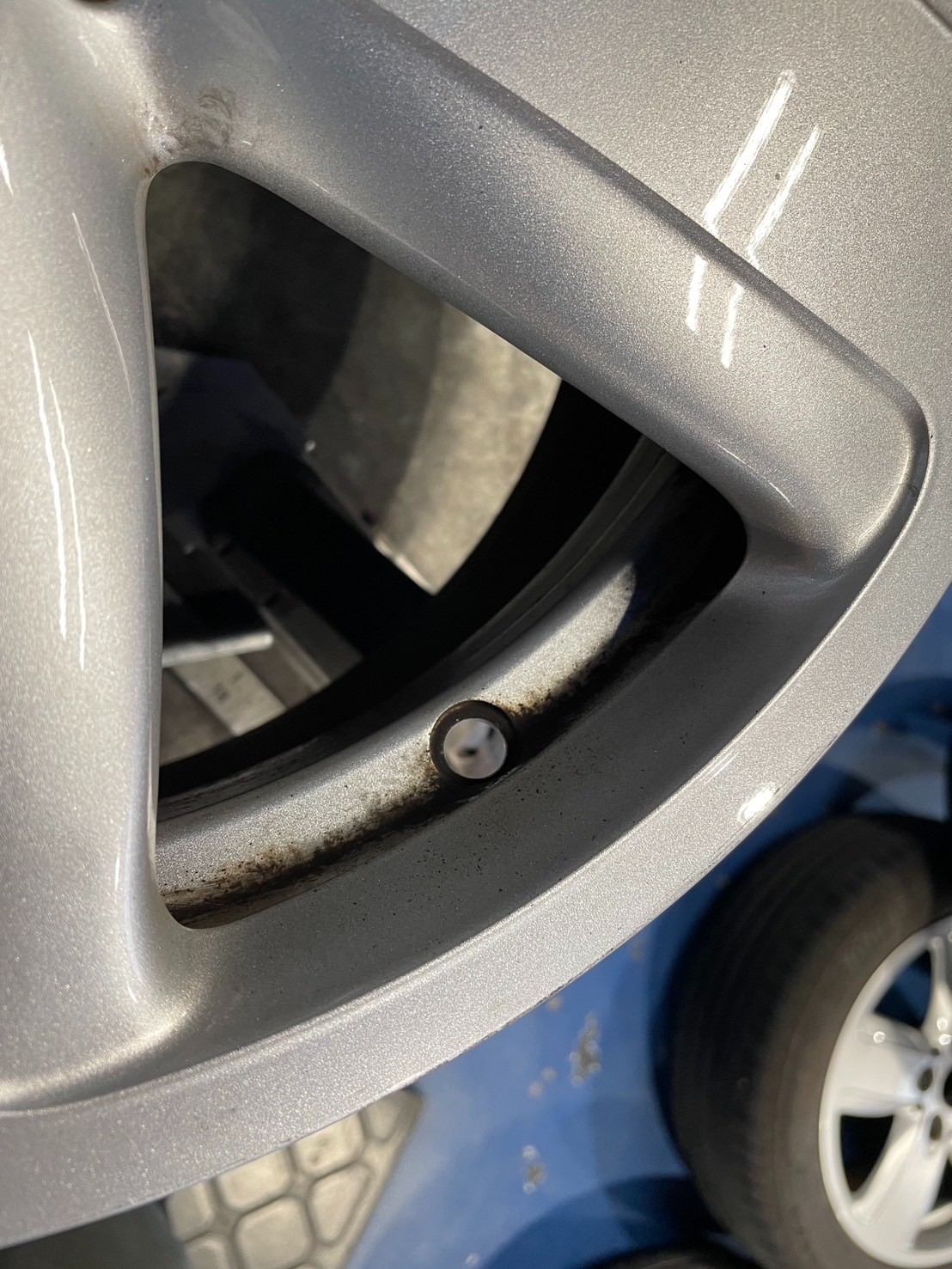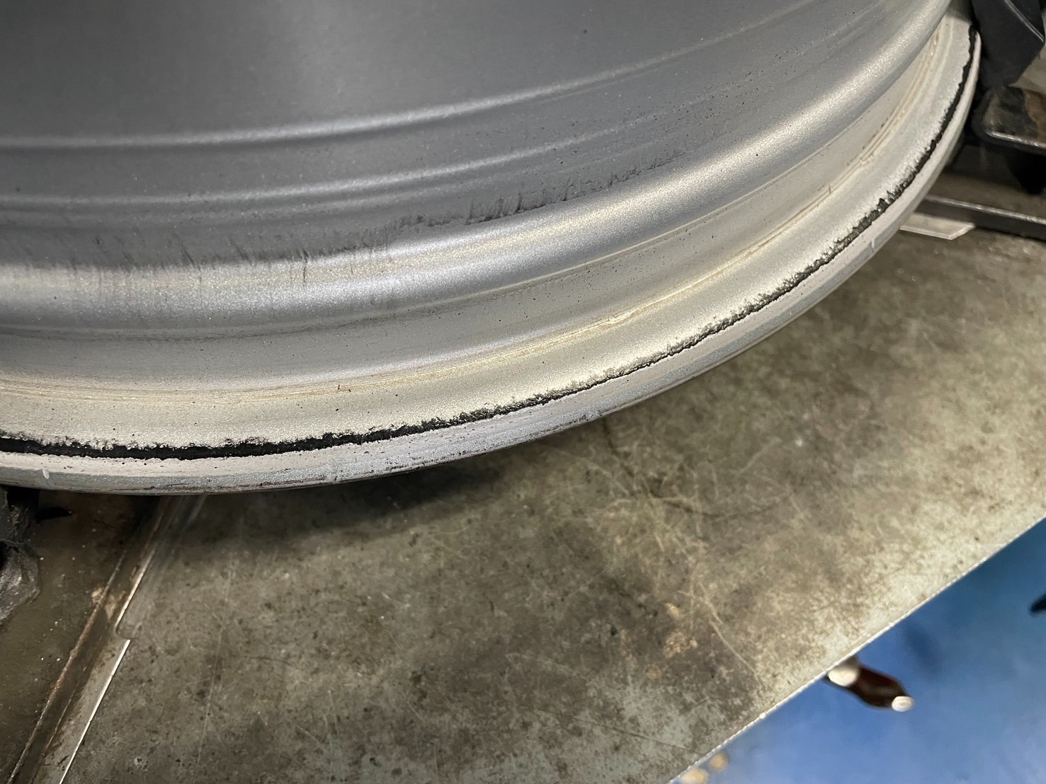 ホイール側にタイヤの残りかすが残ってしまうので丁寧に取り除きます。