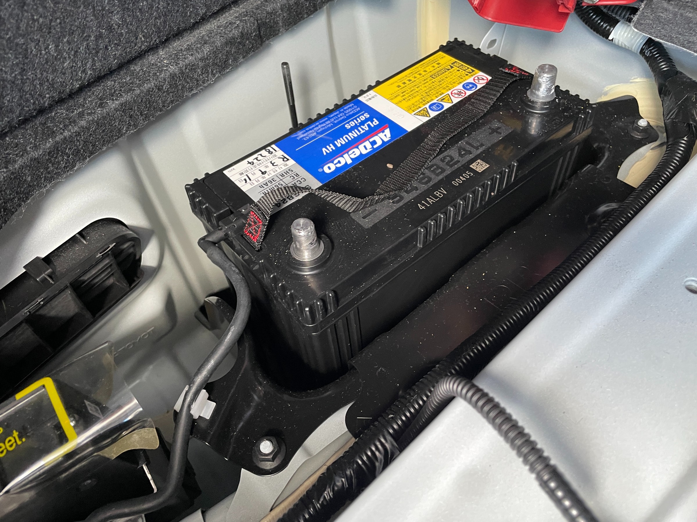補機バッテリーはトランク左側にあります。