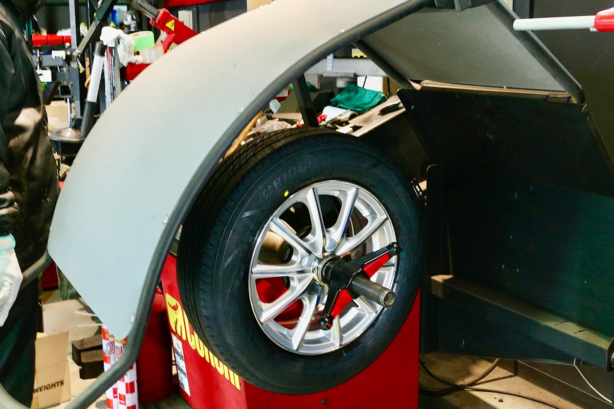 空気を充填したタイヤ・ホイールをホイールバランサーに取り付けて回転させることで計測し、バランスウェイトを取り付けることで適正な重心バランスに調整します。バランスがとれていないままタイヤ・ホイールを装着して走行すると、振動が発生しやすくなります。