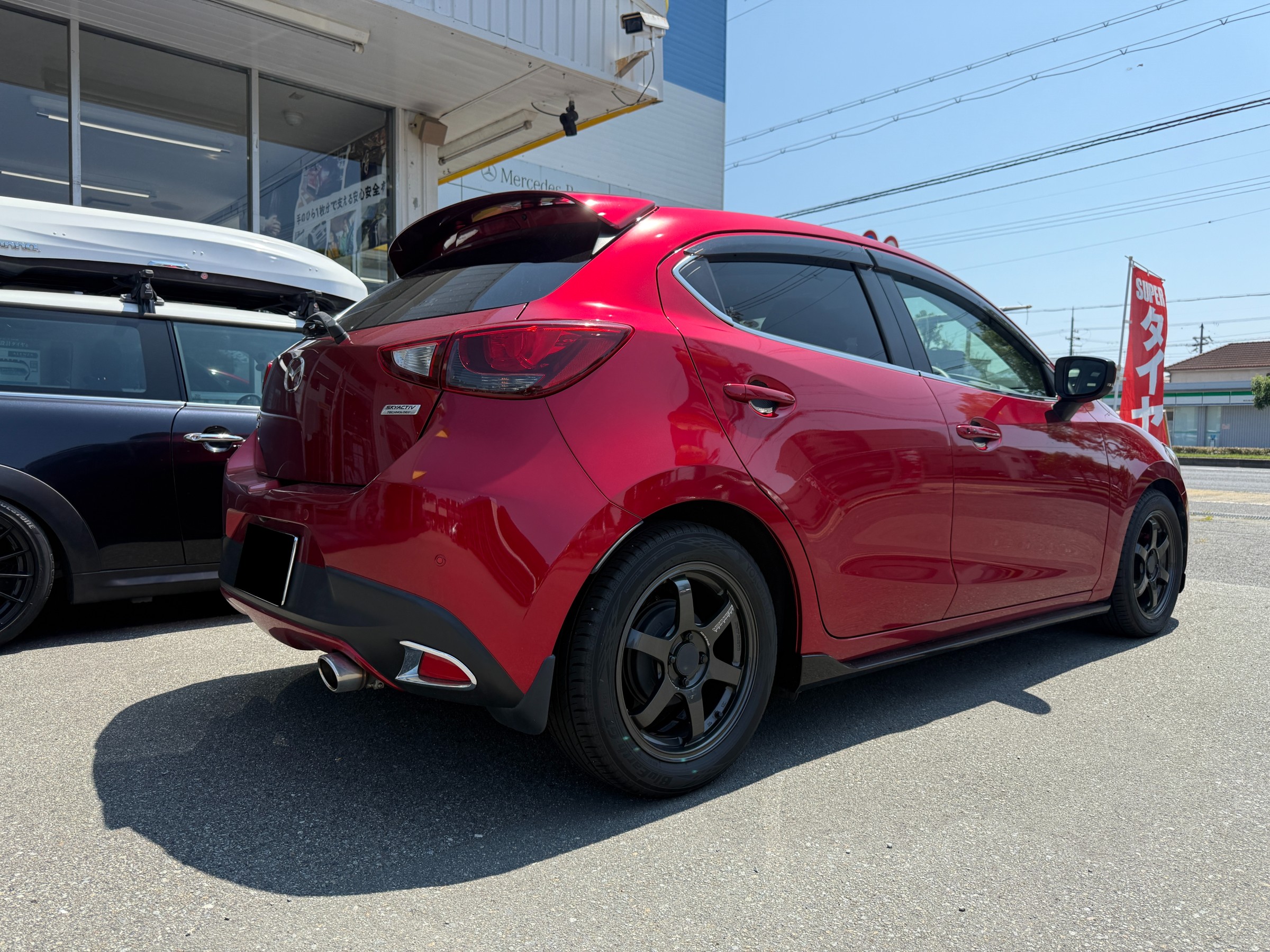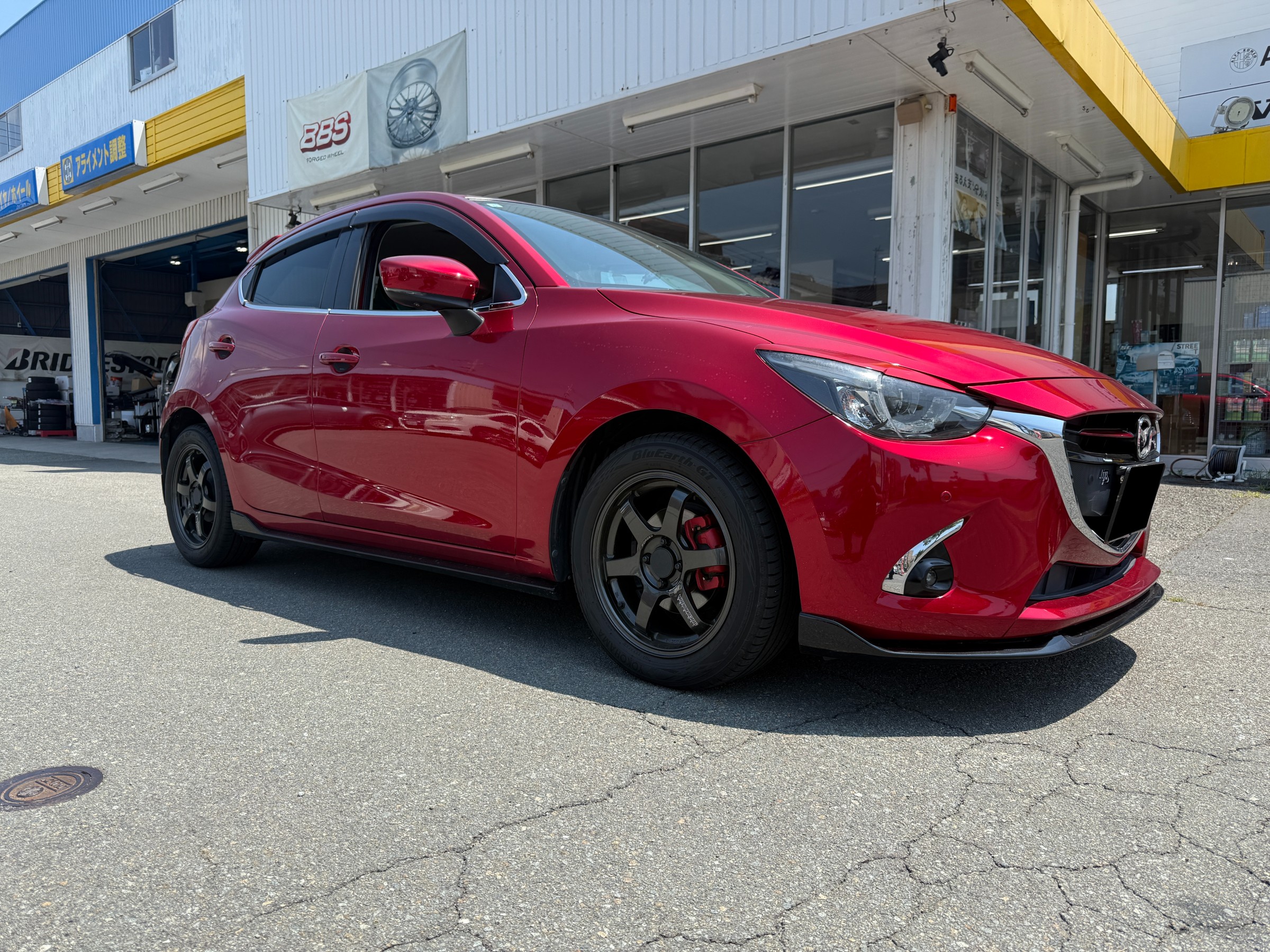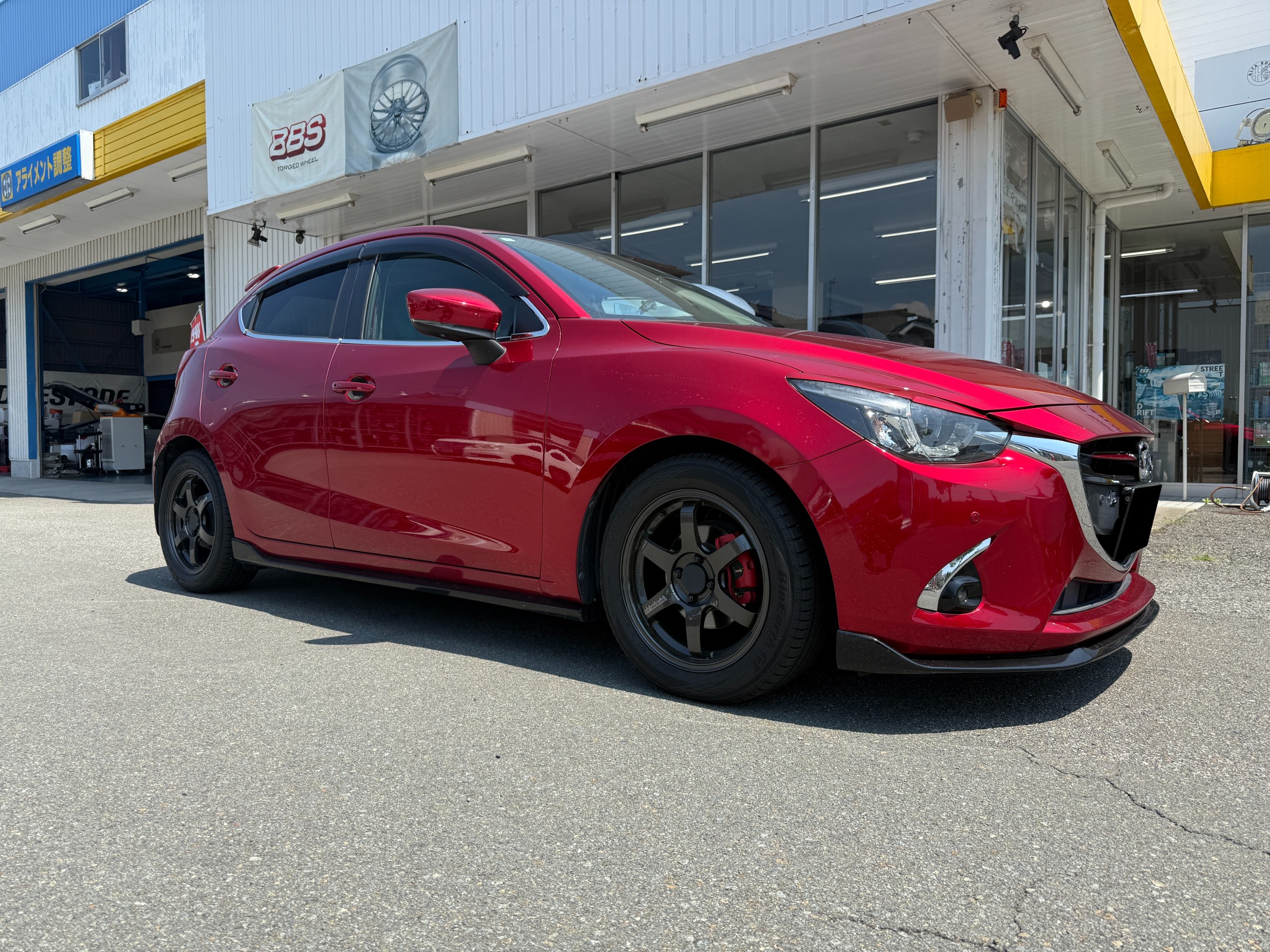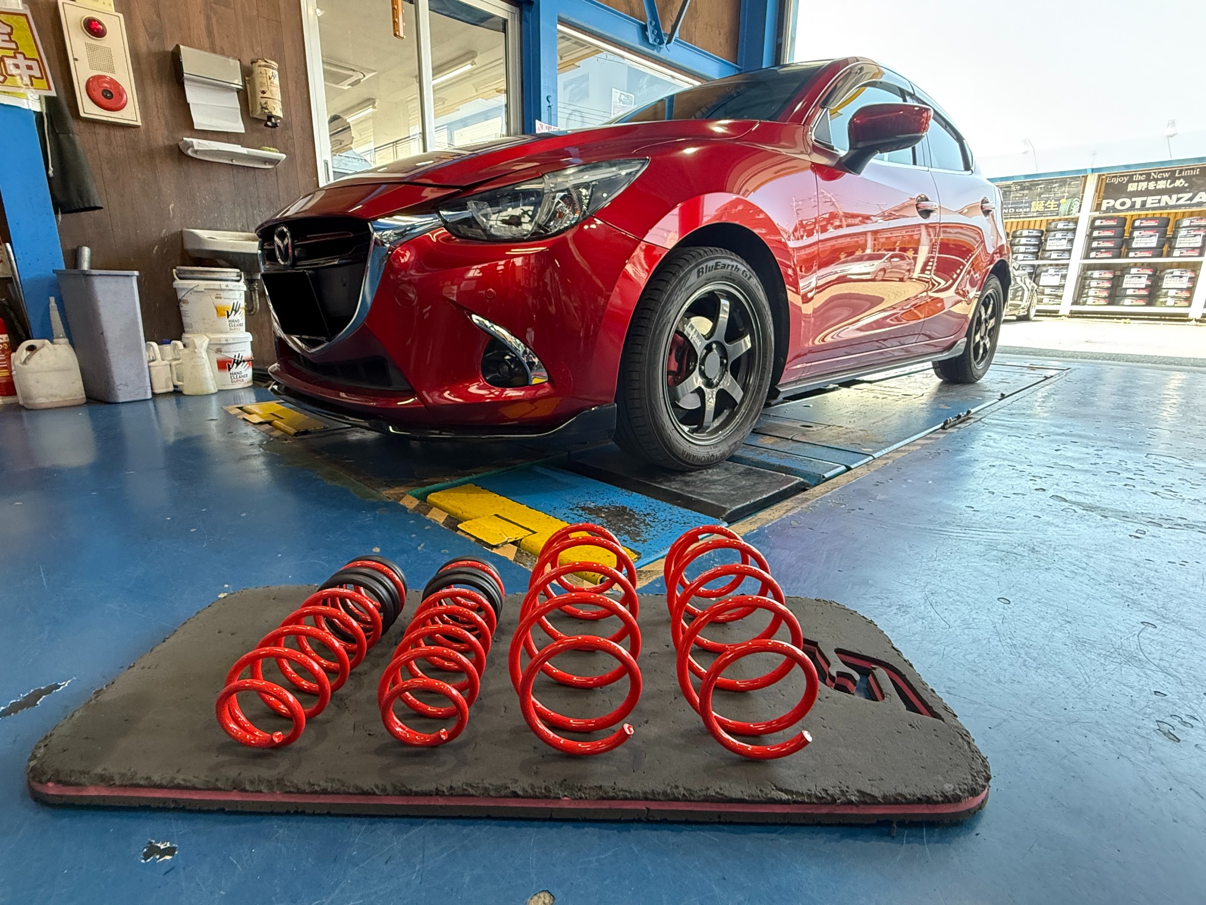 本日は『マツダ デミオ』にオートエクゼのダウンサスを取り付けます!!