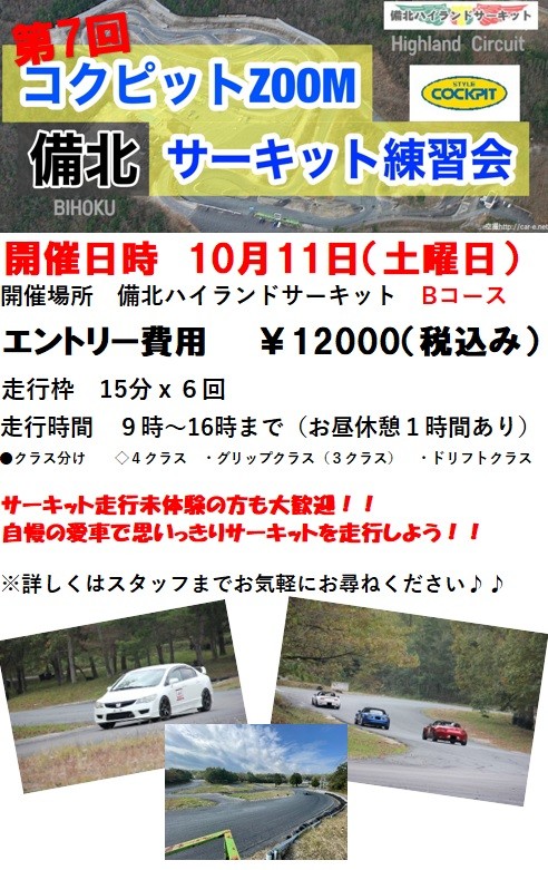 そんな大人気のコクピットズームの走行会のエントリーは、ぜひ店頭にてお待ちしております!