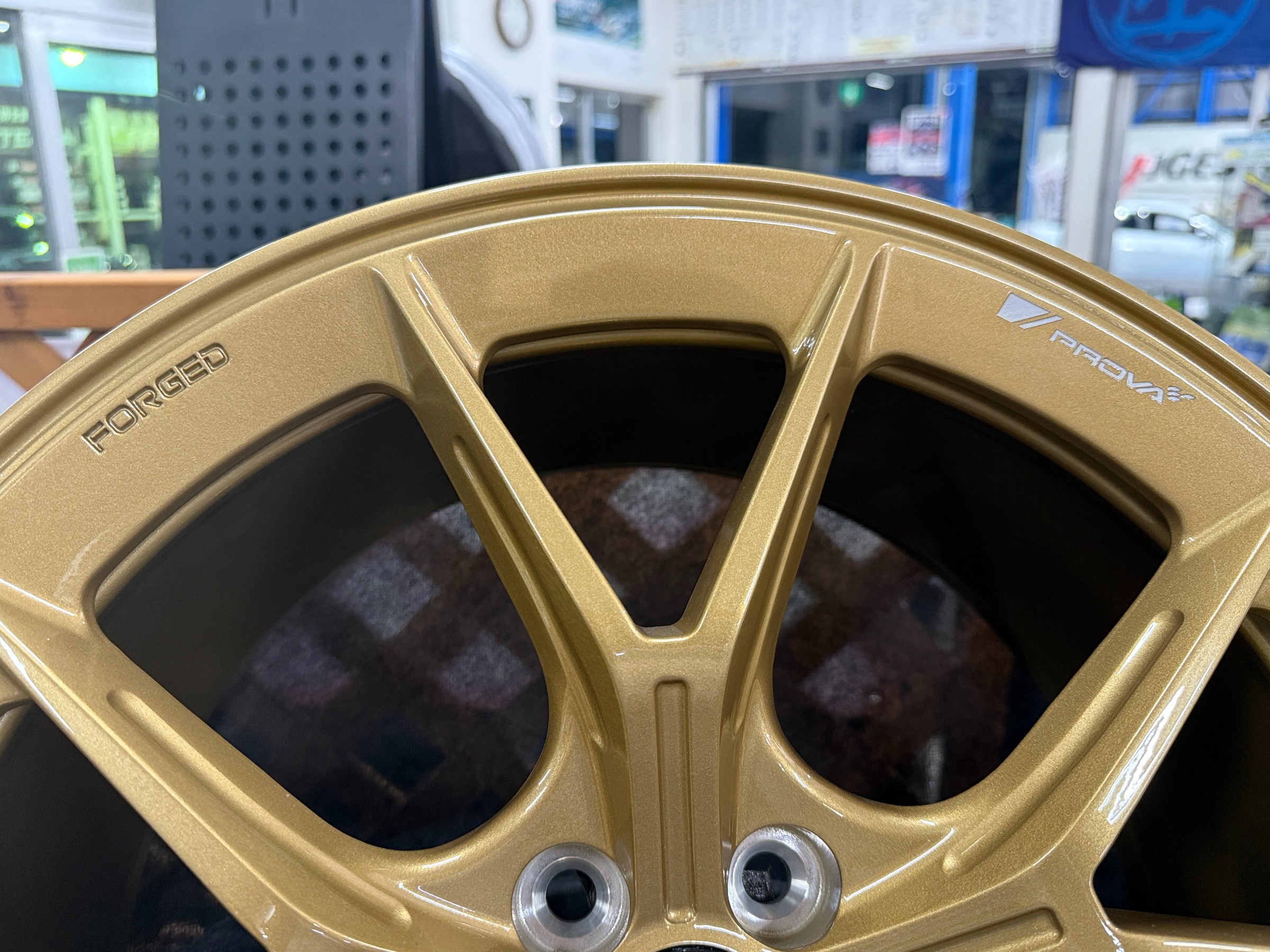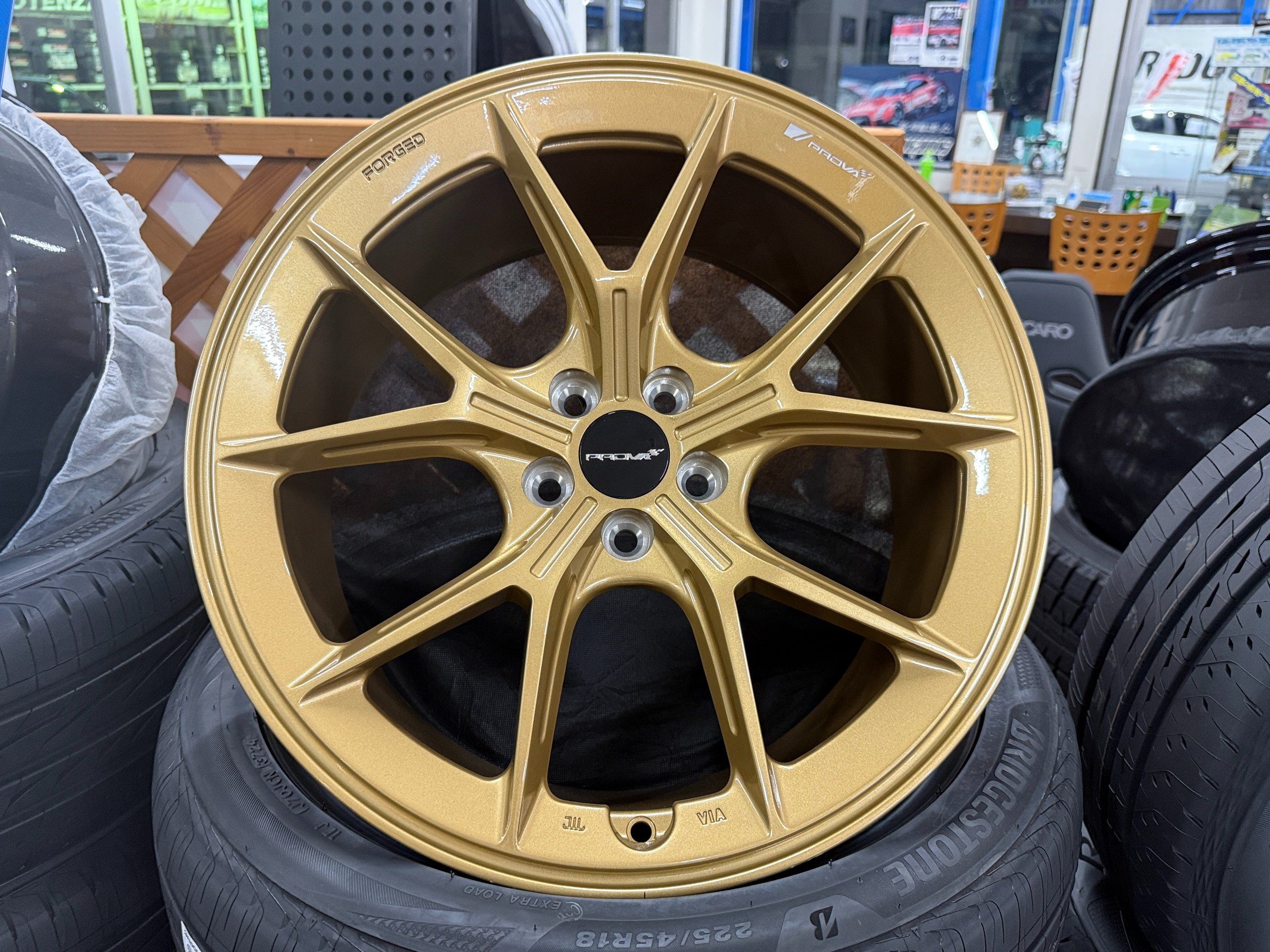 光沢感のあるレンズタイプのセンターキャップには、「PROVA」のロゴがあしらわれている。