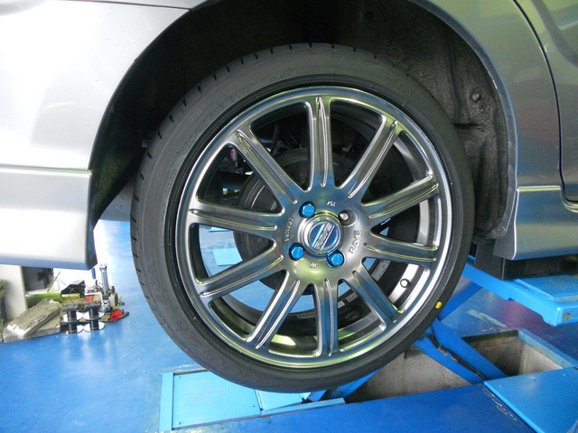 前車マーチから移植したホイールは、ツラウチというよりはかなり内側に入り込んでいました。