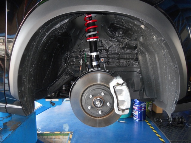 ということで、本日の作業紹介はタイヤではなく車高調の取付紹介です。
