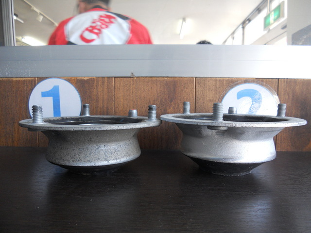 この新品のアッパーマウントを以前と同じ寸法で組み付けてみると、車高に1センチの差が出ました!!