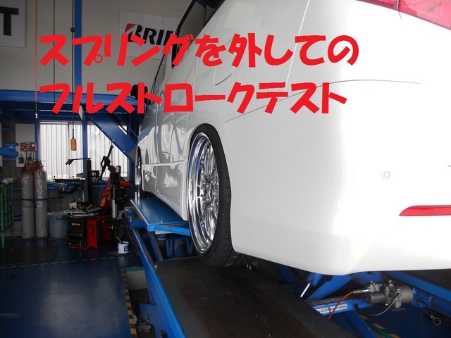ホイールの装着はあっという間ですがきわどいマッチングの為、恒例のフルストロークテストです。