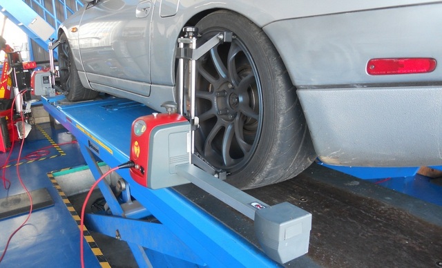 本日の作業紹介は、走行会直前のアライメント調整です。