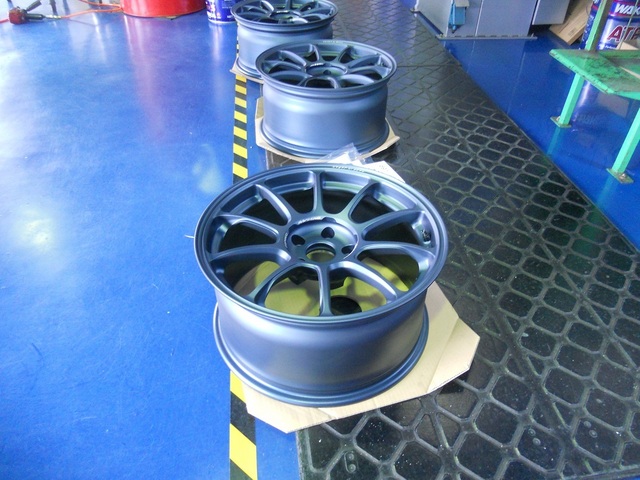 マットブルーガンメタのホイールとホワイトのボディカラーのマッチングがバッチリで何よりです。