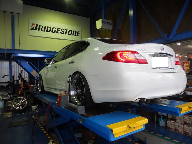 当該車両は、フロントのキャンバー調整も可能なため総合的に調整をします。