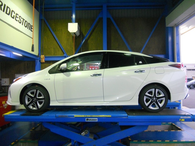 本日の作業紹介は、まだまだ見かける車両は少なめの50系プリウスのホイール交換です。
