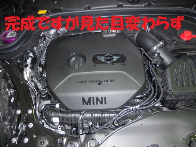 取り付けが完了すると、ちょっと残念なほどエンジンルームに変化がありません(涙)