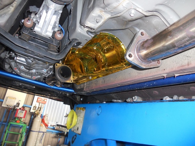 冬場は足元が暖かくてよいのですが、夏場は涼しい方が好ましいためエキマニ~触媒付近のフロアに遮熱処理をしました。
