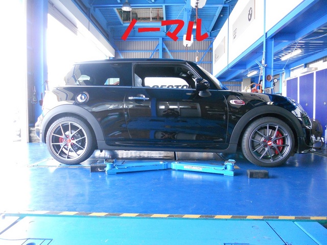 クラブスポーツを装着したミニは、調整箇所が多く作業者としては腕がなりますよ!