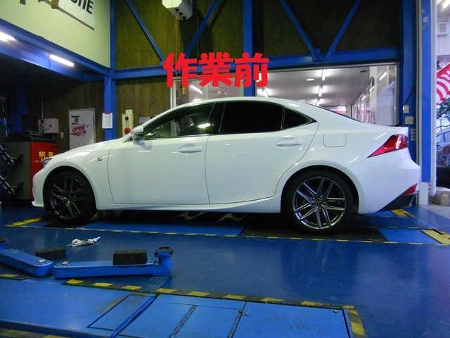 本日の作業紹介は、新型レクサスIS200tに車高調の装着です。