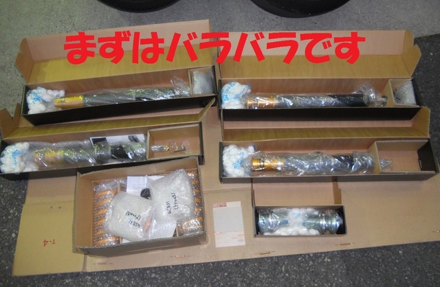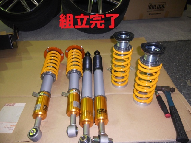 オーリンズのコンプリートキットはいつも通り部品がバラバラで到着ですので、説明書を読みながらまずはメーカー基準値にて組み付けです。