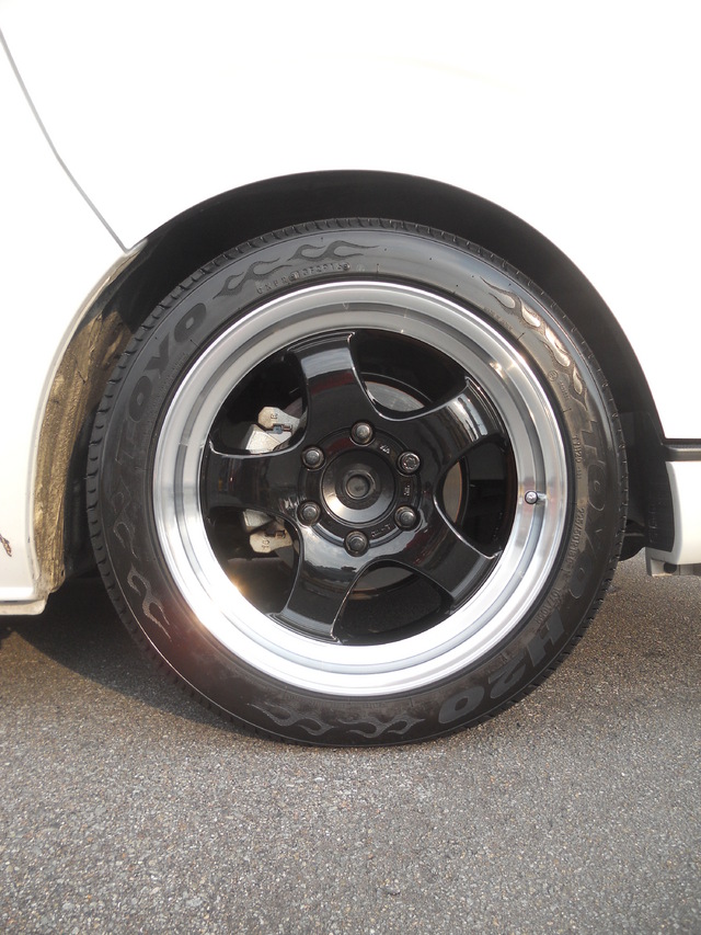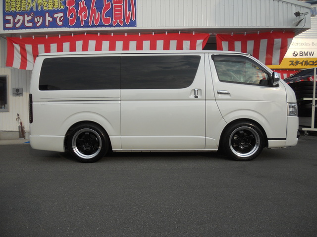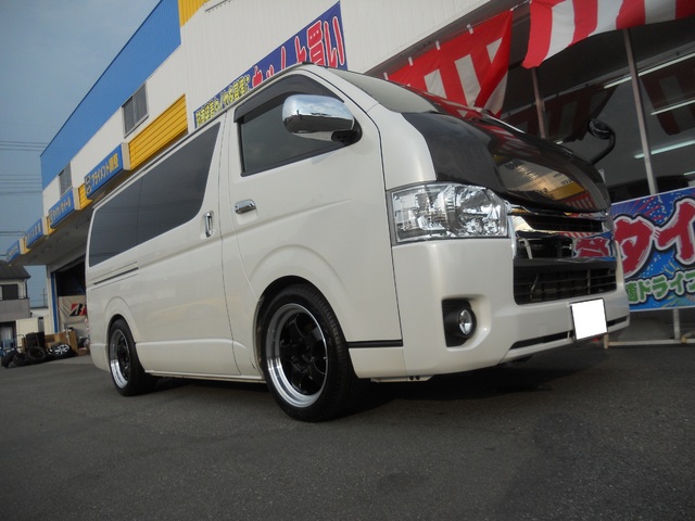 以前から当店でタイヤ・ホイールなどカスタムからメンテナンスまでしていただいておりますこちらのハイエースの、タイヤ・ホイールを交換いたしました!