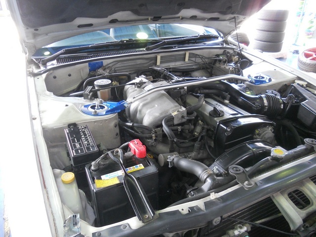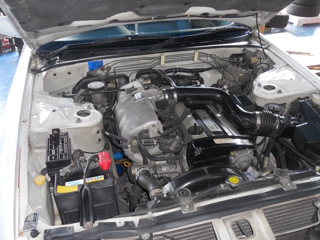 直列6気筒の縦置きエンジンが鎮座するエンジンルームに、クスコブルーのタワーバーを追加したことでスポーツカーらしいエンジンルームになりましたね。