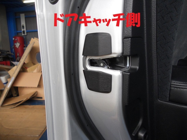 ドアのキャッチ部分とストライカー部分にドアスタビライザーを説明書通り取付。