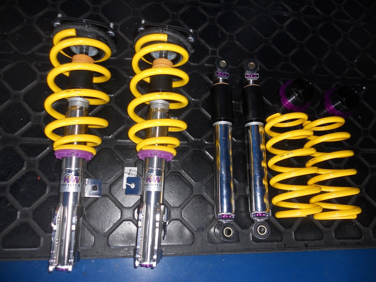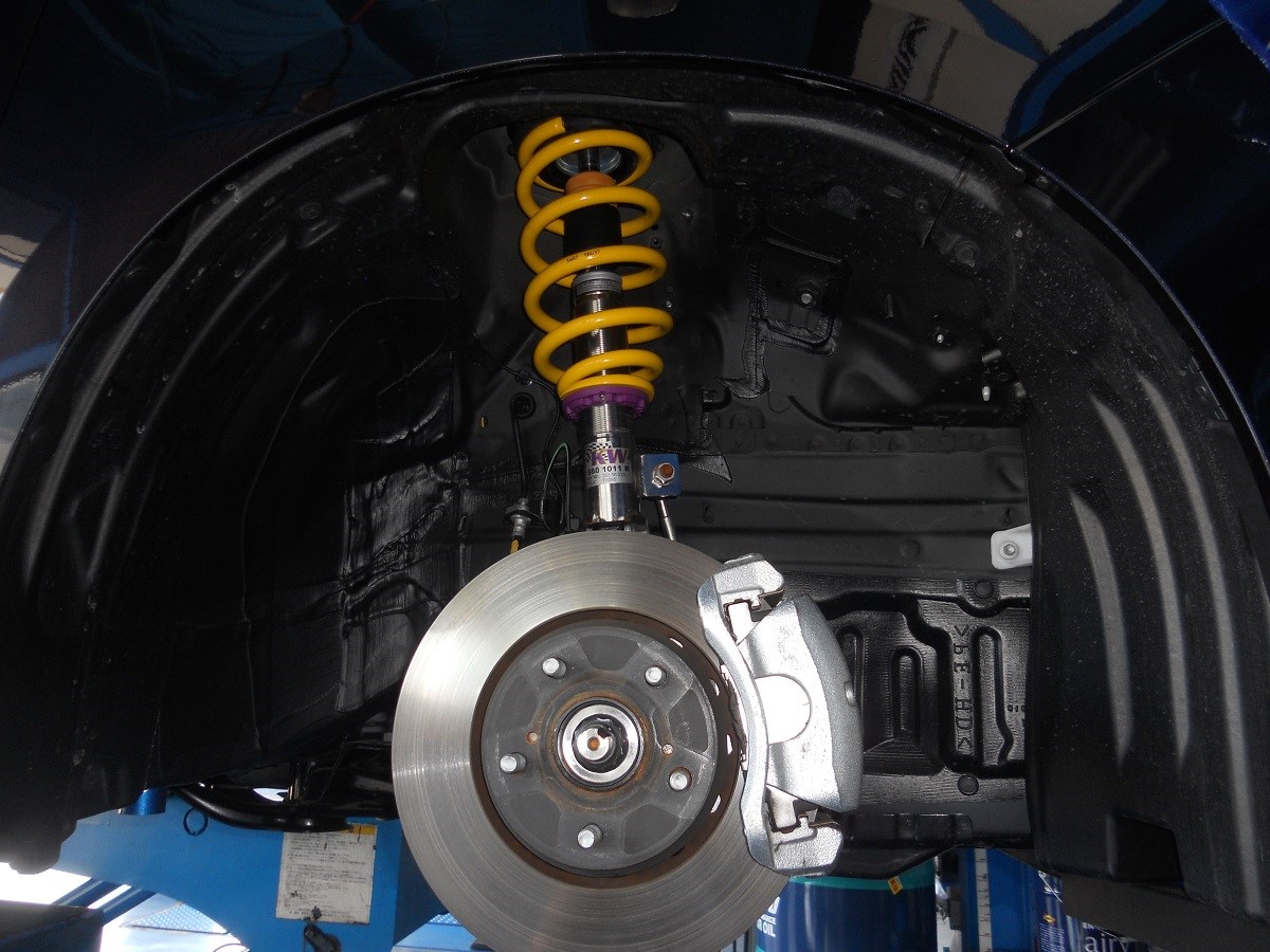 すでに某社車高調を装着済みでしたが、より良い乗り味を求めて車高調を変更です。