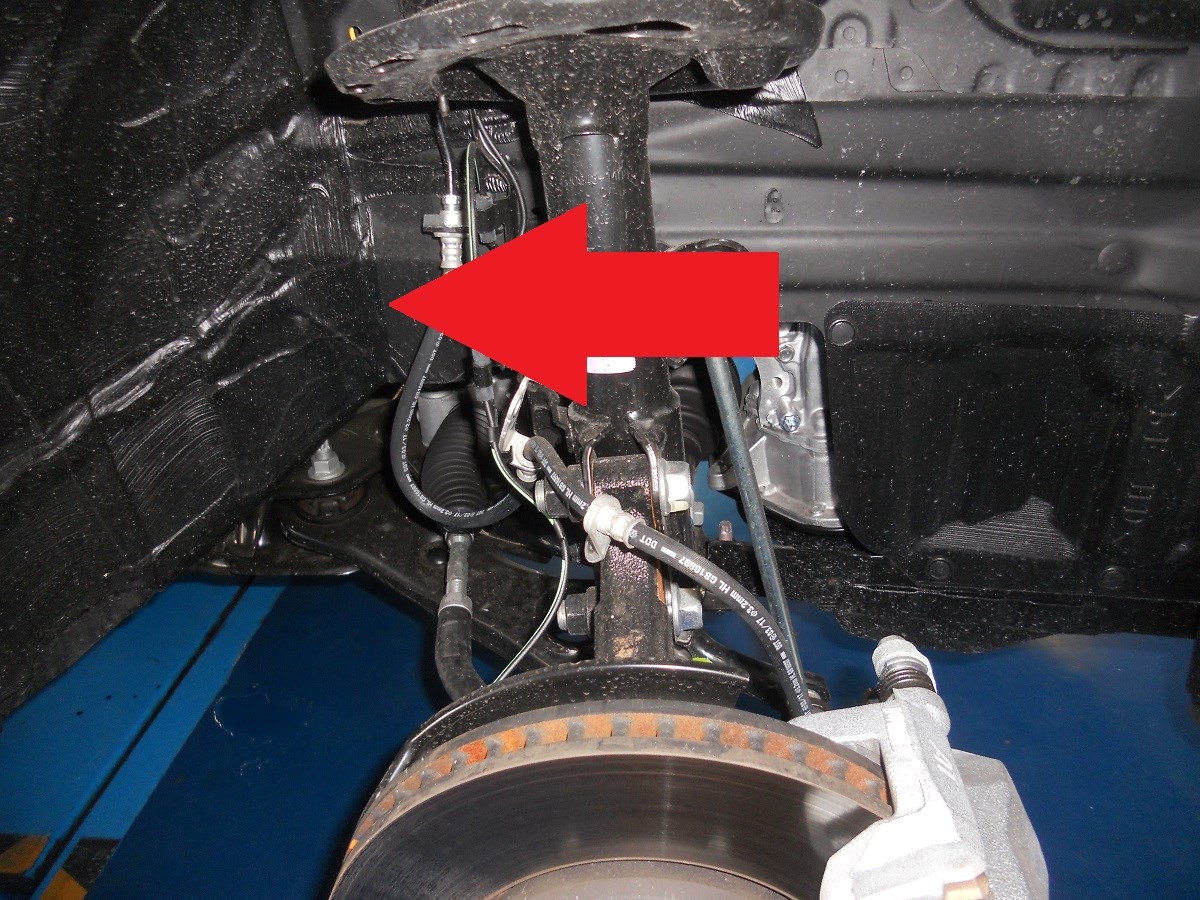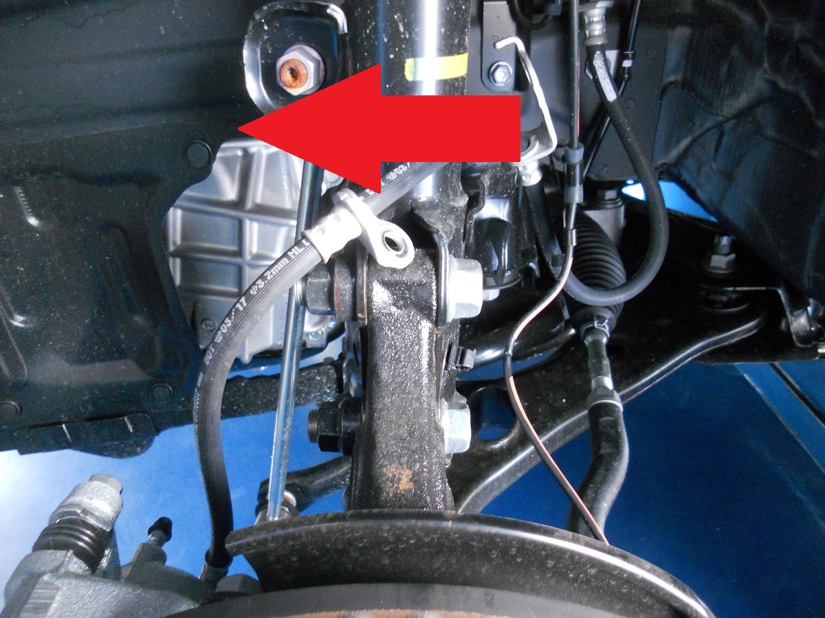 ストラットのナックル部ボルト。