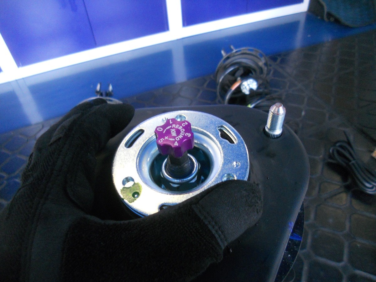 KW車高調ではアッパーマウントは再利用の為、位置をマーキングしたのち取り外します。