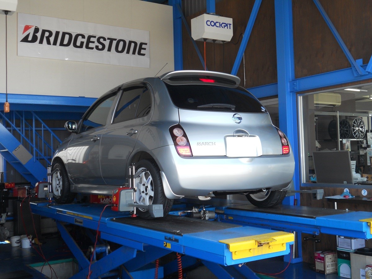 取り付け車両は、プリッとかわいいK12マーチです。