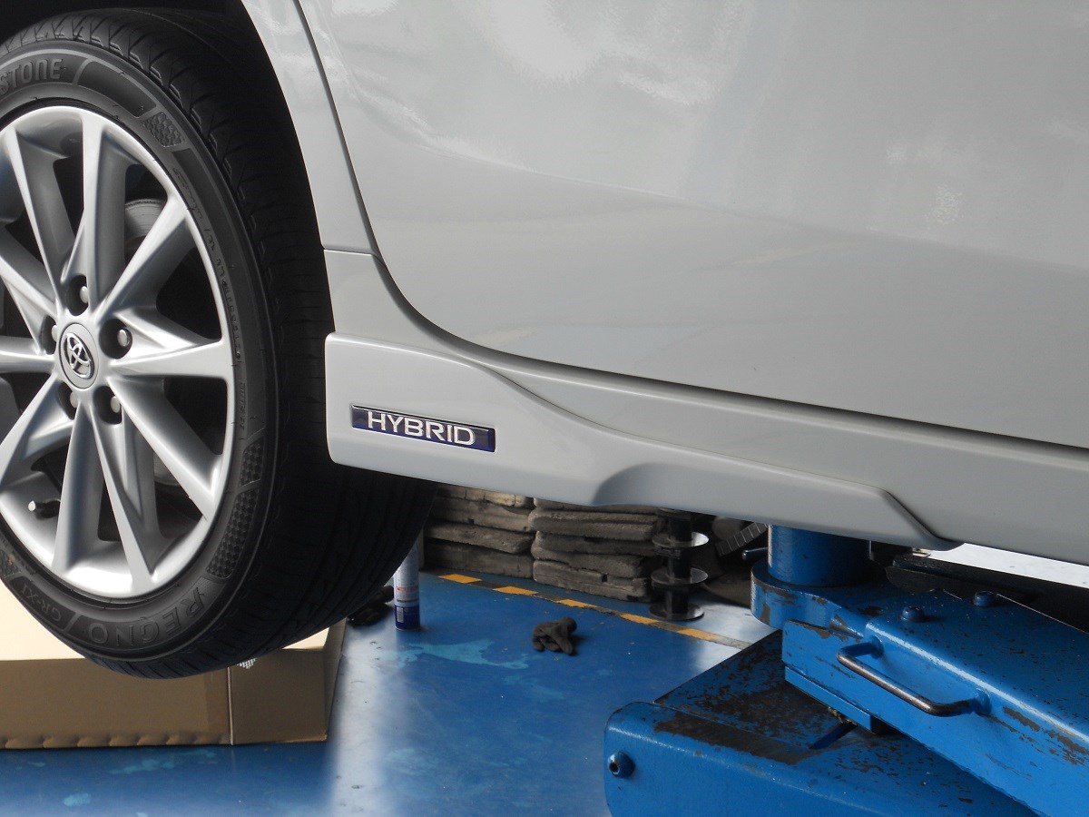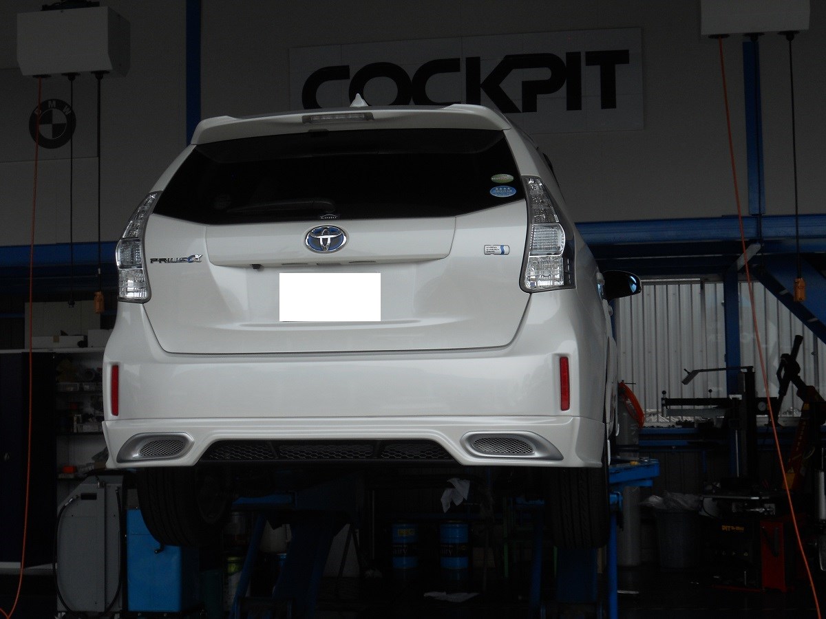そして、この日のメイン作業はプリウスαのエアロ装着です。
