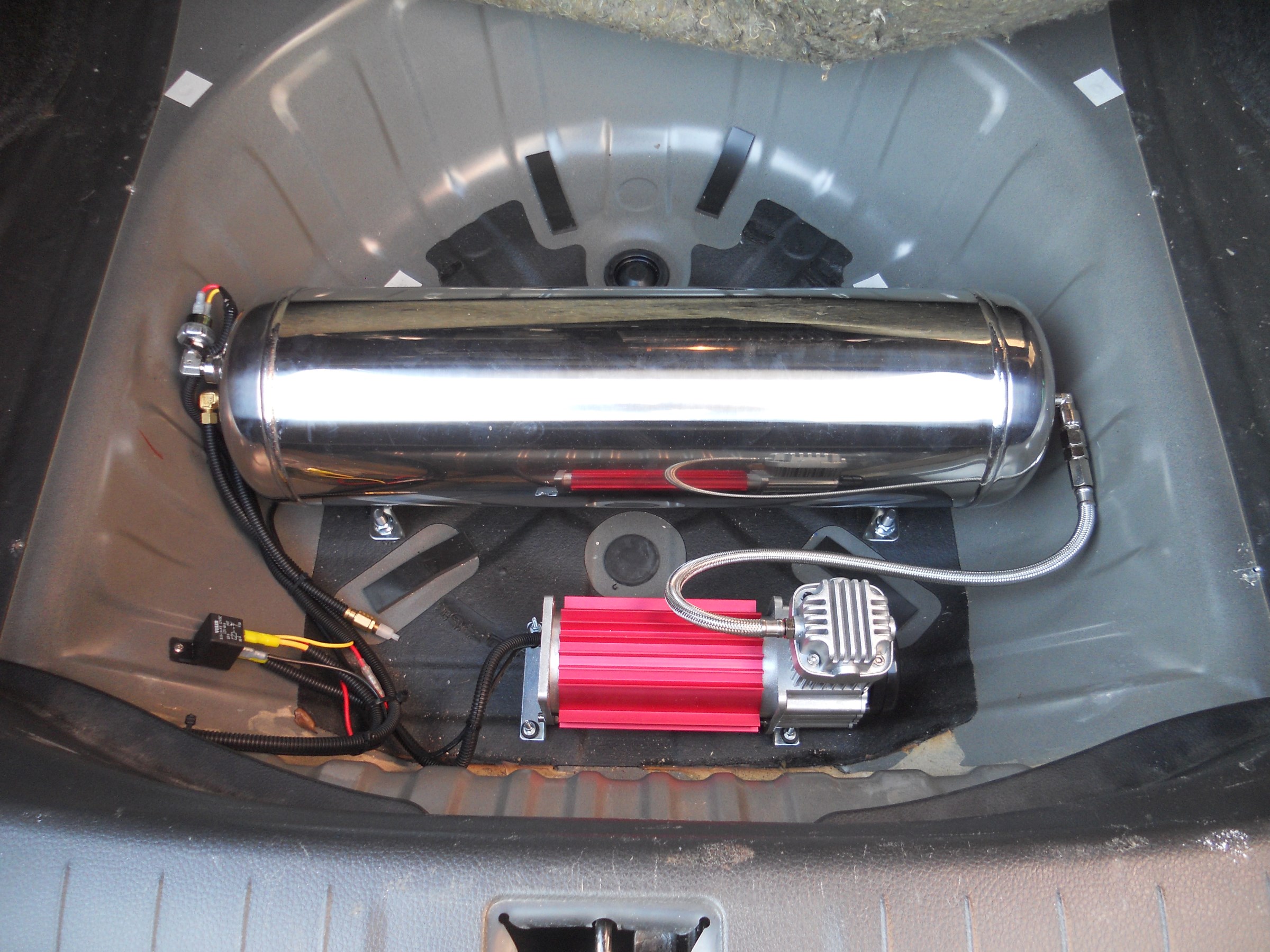 トランクにコンプレッサー、エアタンクを収納していますが、車本来の収納性を損なうことなく取付しております!