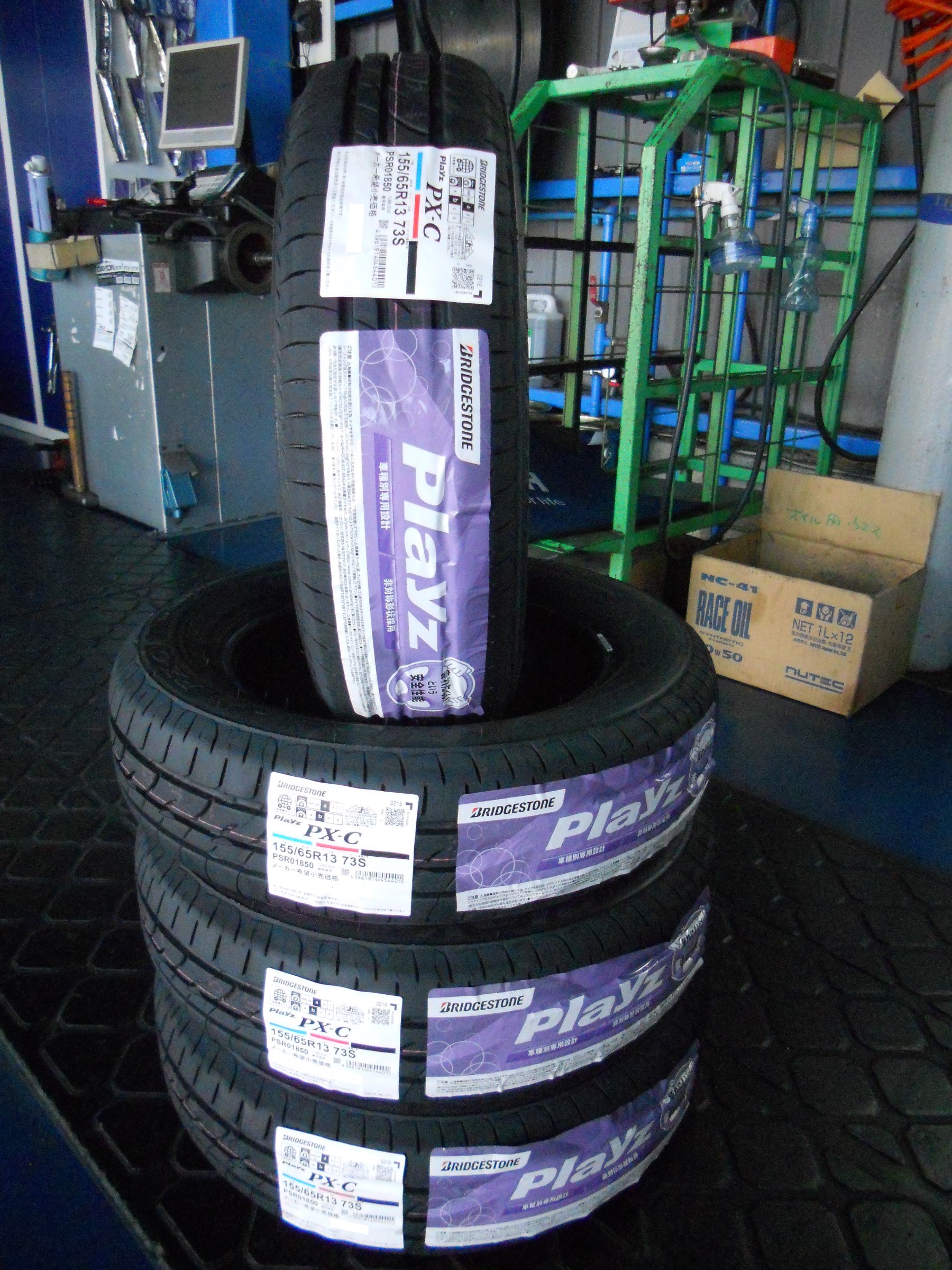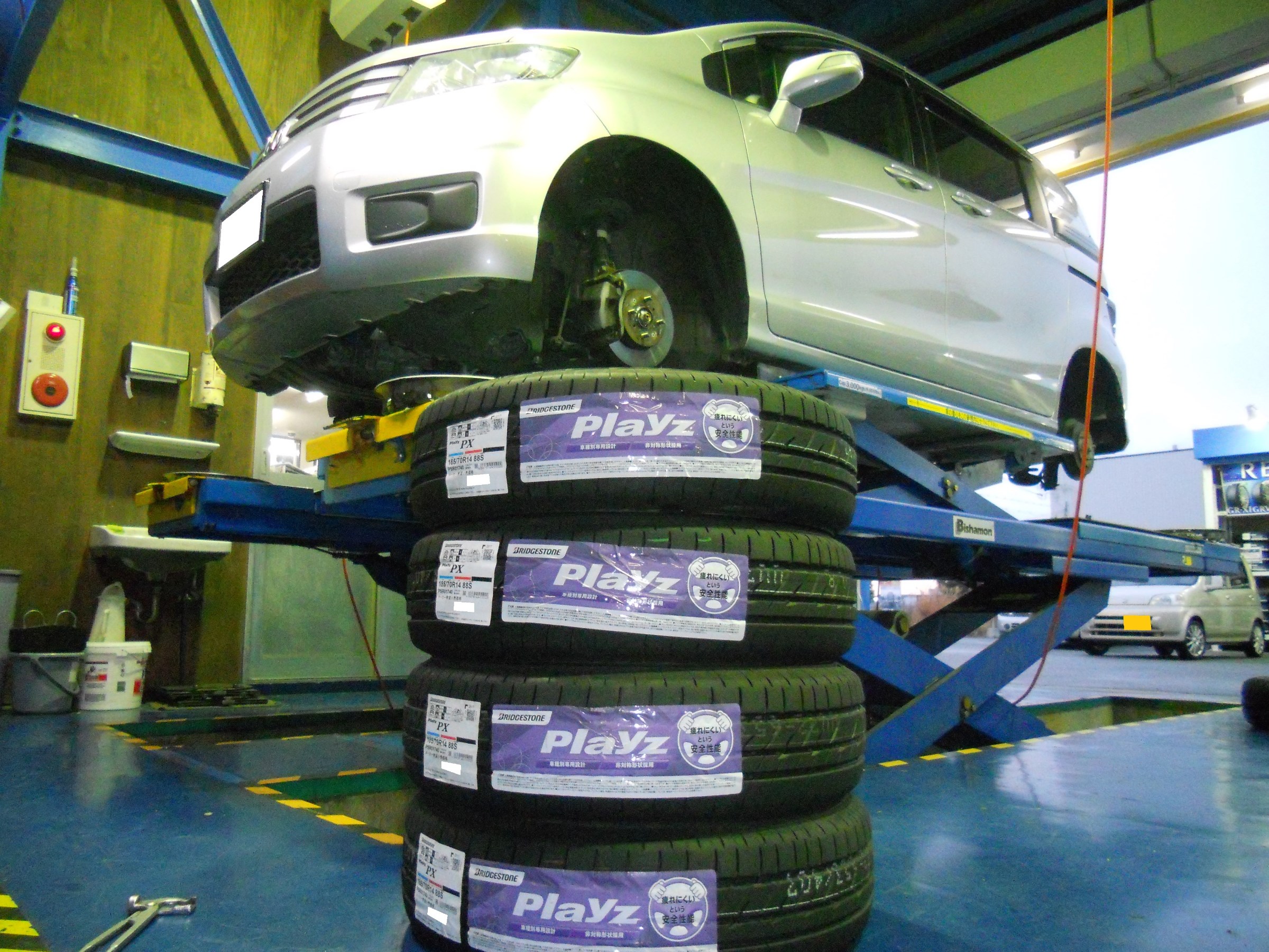 ブリヂストンの疲れにくいタイヤ『プレイズ PX』で4本交換です! タイヤ専門店ならではの取付『センターフィット』で、しっかりど真ん中取付です!