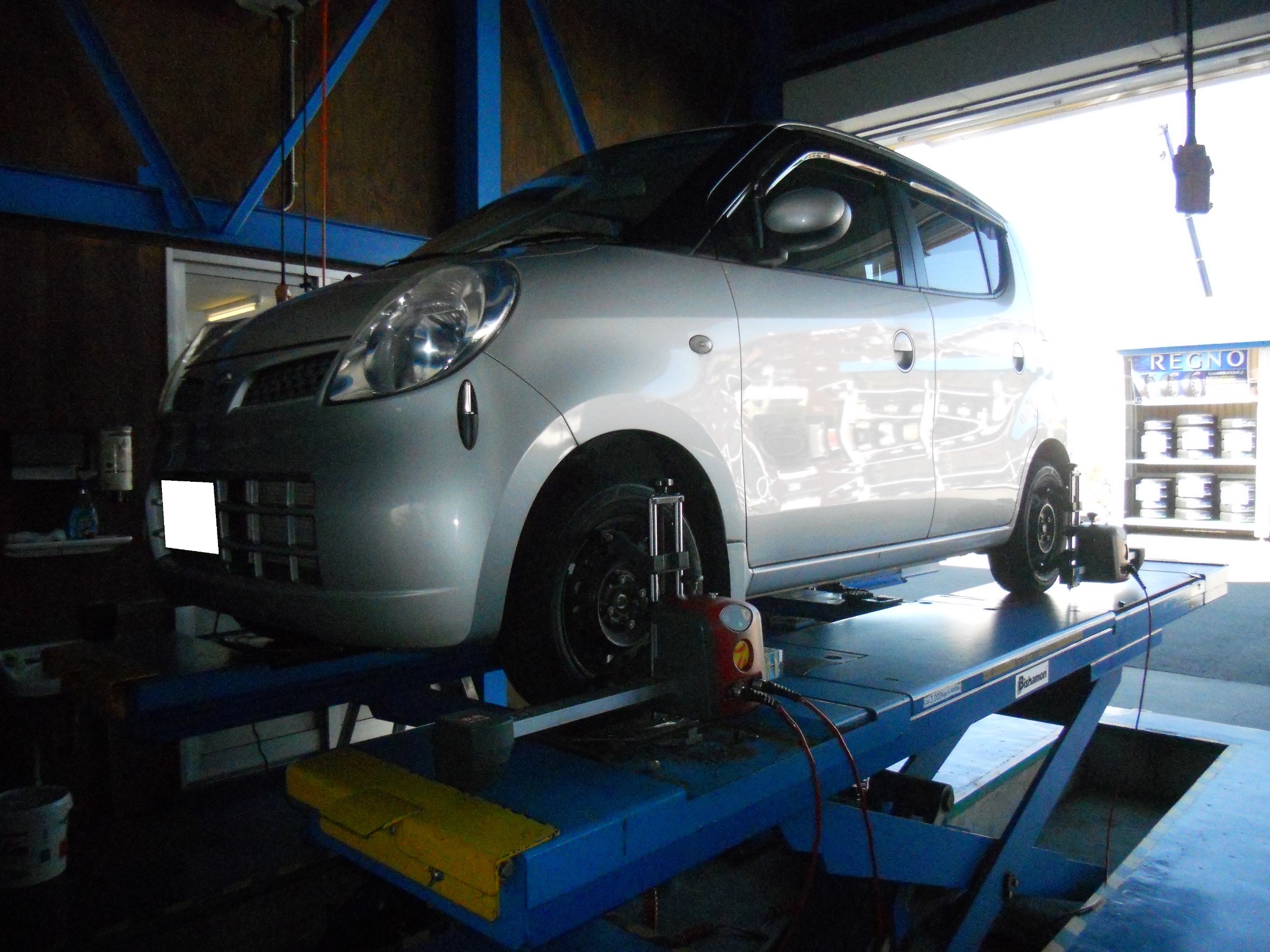 車検後、タイヤ交換を実施。車検時にサイドスリップ調整をしておりますが、より細かく測定するために4輪アライメントも実施いたしました!安心・安全なカーライフの為、ぬかりなしです!