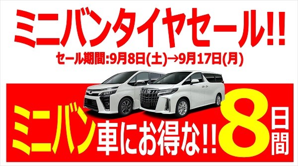 8日~17日はミニバンタイヤフェアを開催!!