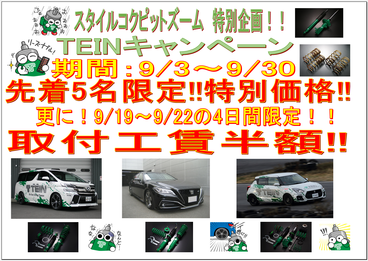 毎回ご好評頂いておりますTEIN(テイン)キャンペーンをまたまた開催致します!!