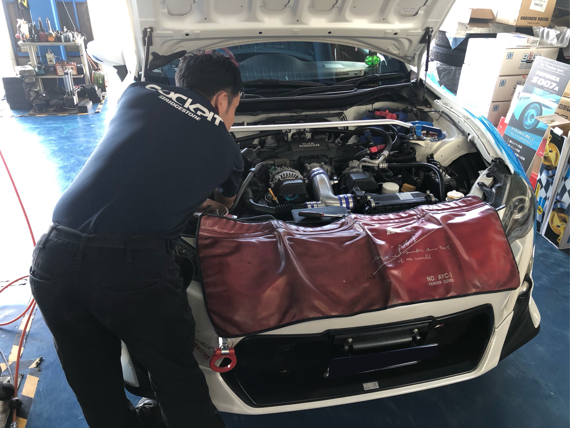さてさて取り付けなんですが・・・エンジンが水平対向ということで作業スペースがかなり狭いです!!!